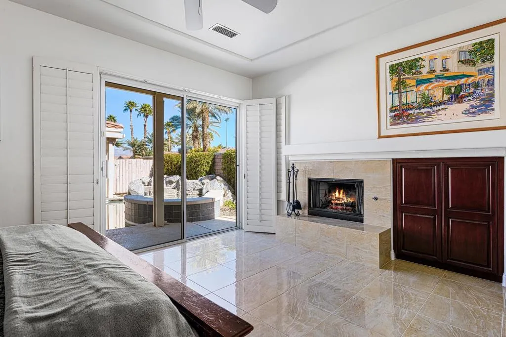 Spacious Desert Retreat with Casita in the Heart of Palm Desert's Lantana Community. Welcome to your private oasis in the prestigious gated community of Lantana, perfectly situated on a prime corner lot in central Palm Desert--just minutes from world-class shopping, dining, golf, and entertainment. Step through a gated front courtyard into a resort-style setting where a sparkling pool and spa are surrounded by lush landscaping and multiple access points to the home. The standout feature: a detached casita with its own entrance and full bath--ideal for guests, extended family, or a private home office. Inside the main residence, you'll find the largest floor plan in Lantana, offering 4 bedrooms, 4 bathrooms, and a dedicated office/den. The formal living and dining rooms are bright and spacious, with a built-in wet bar and seamless access to both the backyard and the central courtyard--creating an effortless indoor-outdoor flow for entertaining. Enjoy your own personal putting green, a tranquil water feature, and a BBQ in the beautifully landscaped backyard. The open-concept great room includes a cozy fireplace, a generous kitchen with breakfast nook, and sliding doors to the courtyard pool--perfect for everyday comfort or hosting friends. The luxurious primary suite serves as a serene retreat with its own fireplace, sitting area, large walk-in closet, and spa-like ensuite bath. Guest bedrooms and the office/den are thoughtfully positioned on the opposite wing for added privacy. A three-car garage completes this exceptional home, offering ample storage and convenience. Don't miss this rare opportunity to own one of the most desirable homes in Lantana--complete with a casita and all the space you need to live and entertain in style.