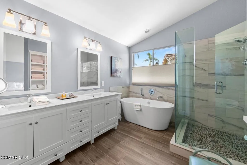 Beautiful Gated Community in Wood Ranch. 3 Bedrooms 2.5 bathrooms. This open floor plan is light, bright and airy with high ceilings. Upgraded kitchen with center island with hidden storage, quartz counter tops, coffered ceiling with recessed lighting, garden window at kitchen sink, wine refrigerator newer appliances. This home is immaculate and very inviting. Highly upgraded master bathroom with upgraded countertops, free standing bathtub, beautiful shower and walk in closet. Covered patio and easy to care for backyard. Epoxy garage floor with built-in cabinets. Spectacular location. This gated community has a private tennis court & private lake for a lovely picnic. Located close to a gorgeous park, perfect for walking, tennis, basketball and plenty of activities for everyone. Shopping, dining, golf at the private Wood Ranch Golf Club and freeways all conveniently located. Ronald Regan Library is just 5 minutes away. Wood Ranch is a very beautiful community to live in.