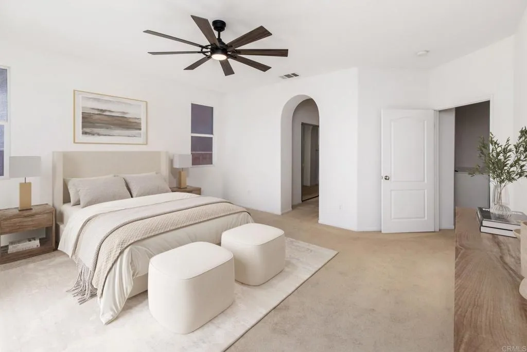 Spacious home in a desirable location featuring 3,107 square feet, 5 bedrooms, 3 bathrooms, and a 3-car garage. The functional floorplan offers excellent flexibility with the primary bedroom located downstairs, along with an additional secondary bedroom—ideal for guests, multi-generational living, or a home office. The open and spacious kitchen flows seamlessly into the family room, creating an inviting space for everyday living and entertaining. Upstairs, additional bedrooms provide privacy and separation, making the layout well-suited for gatherings, extended stays, or larger households. Additional features include solar, ample storage, and a layout designed for comfort and usability. Conveniently located near trails, Lake Skinner, shopping, and freeway access. No HOA. Hurry this one has pride of ownership and is ready for you.