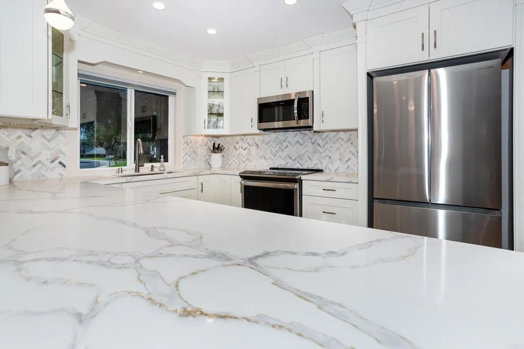 Beautifully remodeled 2-bedroom, 2-bath home featuring an open, spacious, light-filled floorplan with exceptional views and privacy. Luxury vinyl plank flooring flows throughout, complemented by neutral paint and vaulted ceilings with a stunning living room beam. The inviting living space showcases a tiled fireplace and custom entertainment center, creating a warm and stylish focal point. The chef’s kitchen is both elegant and functional, offering stainless steel appliances, custom cabinetry with under-cabinet lighting, a marble backsplash, quartz countertops, and a pantry for added storage. The spacious primary suite includes built-in closet storage and a spa-inspired bathroom with dual vanities and a large walk-in shower. The secondary bathroom has been recently remodeled with custom shower tile finishes. Additional highlights include newer windows with Hunter Douglas remote-controlled shades, abundant closet storage in both bedrooms, new garage storage cabinets, and a secure locked storage unit adjacent to the garage. Enjoy seamless indoor-outdoor living with a full-length backyard patio, new patio cover, and private panoramic views. Situated on an expansive cul-de-sac lot, the home offers exceptional privacy and a premium location. Located within the highly desirable Casta del Sol community, residents enjoy resort-style amenities including multiple pools, a fitness center, recreation and billiard rooms, library, craft rooms, BBQ areas, fire pits, a wide variety of clubs and activities, and exclusive access to Lake Mission Viejo.