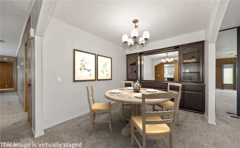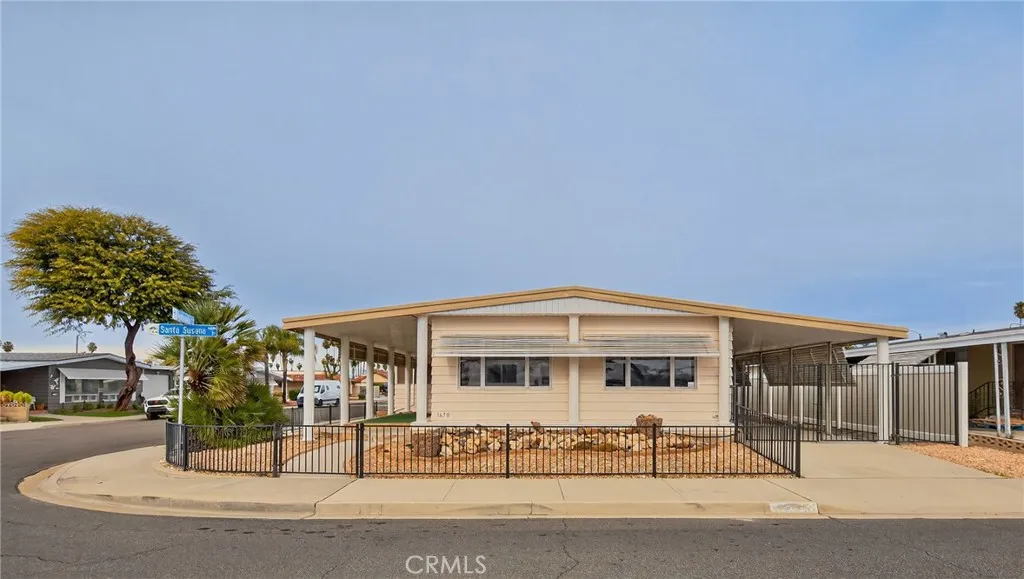 Spacious Corner-Lot Home in Active 55+ Community with Extensive Updates! Welcome to this well-maintained and thoughtfully upgraded manufactured home located in a desirable 55+ community offering multiple clubhouses, pools and an abundance of senior amenities. Situated on a prime corner lot, this home offers excellent outdoor functionality, privacy, and storage. The property features gated, covered carport parking, with an additional separate gated parking area on the north side, two storage sheds one with electricity. A dedicated workshop on the west side of the home with electricity—ideal for hobbies or extra storage. Inside the home offers 2 bedrooms and 2 bathrooms with a spacious and versatile floor plan. A large living room flows into the formal dining room with a built-in china hutch, while the oversized family room provides additional space for relaxing or entertaining. The kitchen has been nicely updated with quartz countertops, a new stovetop, new wall oven, new range hood, new sink and faucet, and a new refrigerator. Opens directly to the family room for easy everyday living. The master bedroom includes an ensuite bathroom featuring a shower-over-tub, dual vanities, a large linen closet, new toilet. The guest bathroom offers a walk-in shower, single vanity, linen cabinet, new toilet. A spacious indoor laundry room includes a washer and dryer, ample cabinetry. Additional updates include electrical improvements completed by a licensed electrician, a new water heater, and plumbing upgrades performed by a licensed plumber, providing added peace of mind for the next owner. This home has had significant updates throughout, including fresh paint, New Carpet and New laminent flooring making it move-in ready with room for future personalization. A fantastic opportunity to enjoy comfort, functionality, and an active lifestyle in a well-established senior community. Call to set up your personal tour.
