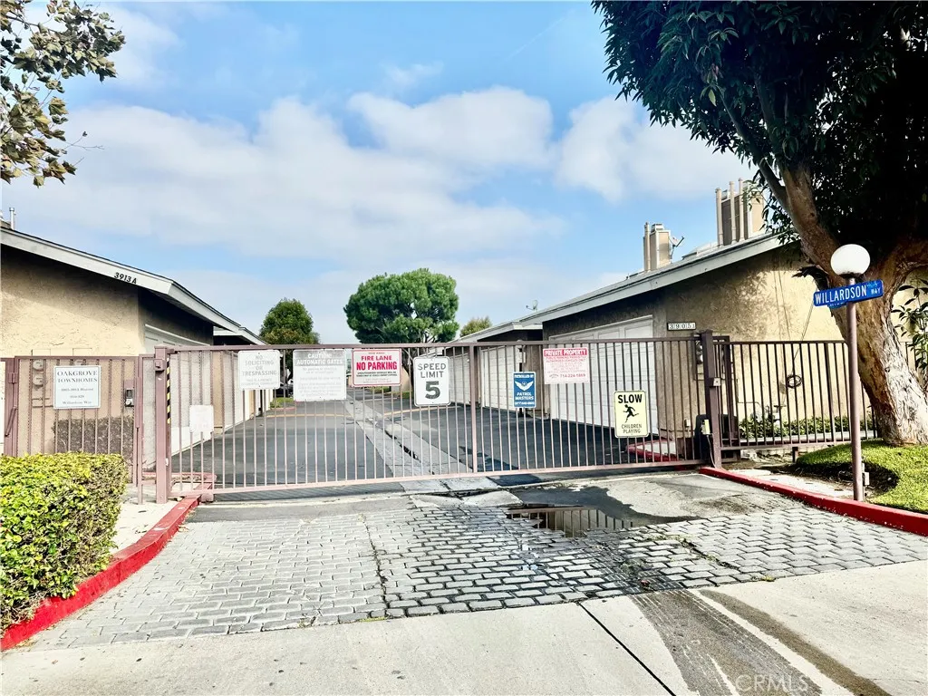 NEW PRICE!! Oak Grove Townhomes -- Gated Community. Cross streets: W/Harbor, N/Hazard. End Unit -- only 1 neighbor. Patio area larger than others. Lots of natural light. Excellent location. Upgraded 2-story townhouse with vaulted ceiling. 2 bed, 1.5 baths. 2-car detached garage with large Private Patio -- wrap around patio. Central heating and central air conditioning. Dual-paned windows. Nice and bright with skylights and natural light. Gourmet kitchen with custom cherrywood cabinets, granite countertops, stainless steel appliances, recessed lighting, modern fixtures. Kitchen opens to dining room with ceiling fan. Cozy fireplace in living room. Bathrooms have granite countertops and modern fixtures. Custom built-in closets in both upstairs bedrooms. Walk-in Closet. Hard flooring throughout downstairs. Individual laundry by front patio. Garden Grove Unified School District – Award Winning Schools: R.F. Hazard Elementary – ranks 8; Irvine Intermediate – 9; Santiago High – 6. HOA pool, spa, greenbelt. HOA Dues include trash, building insurance, exterior and common areas. Walking distance to restaurants, shopping, parks, churches…