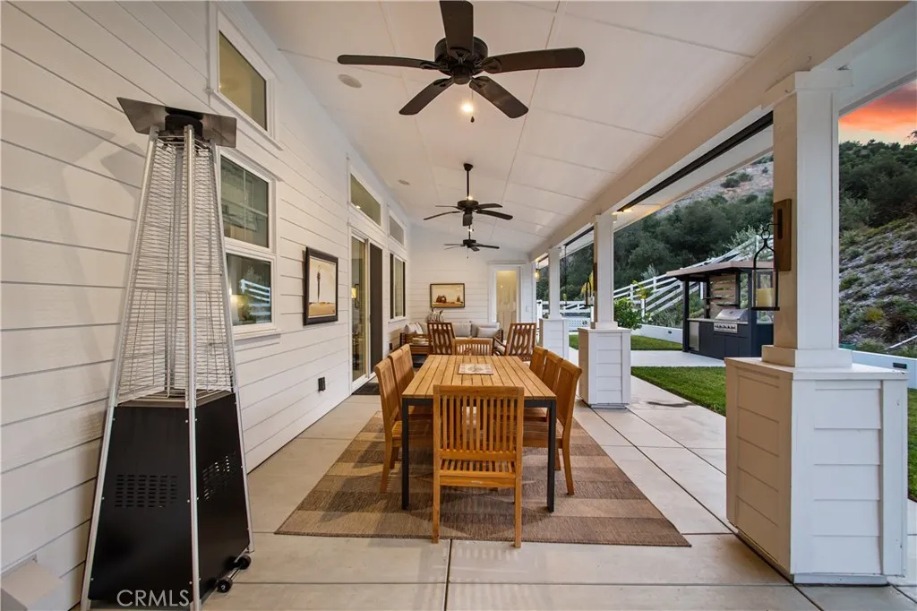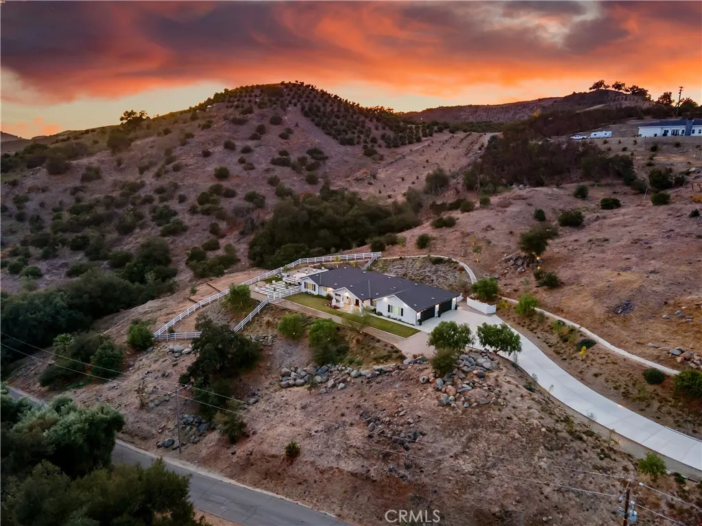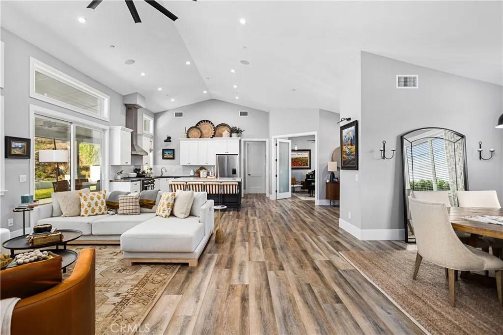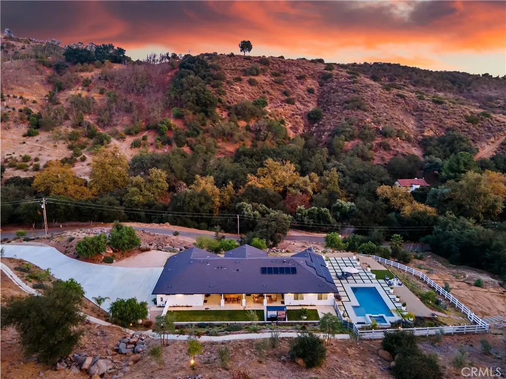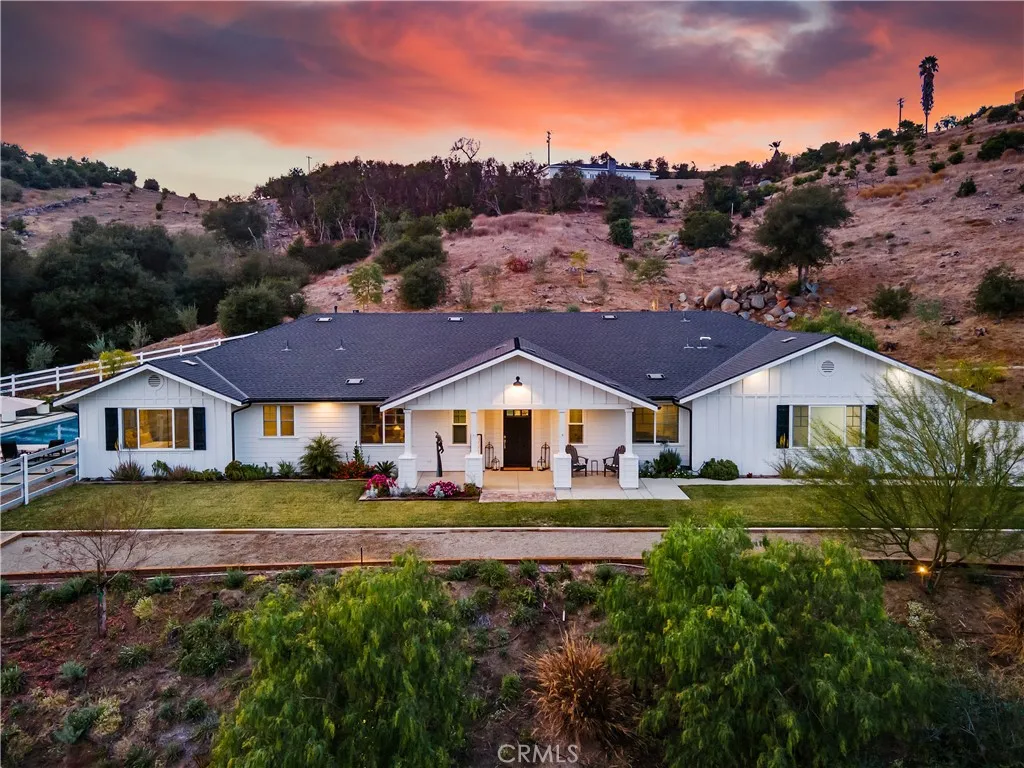 Recently repositioned to reflect exceptional value, this newer construction modern farmhouse estate offers the perfect blend of privacy, design, and resort-style living on nearly 5 acres in the highly sought-after De Luz community. Set against a backdrop of sweeping valley and hillside views, the outdoor space is truly a standout—featuring a custom pool and spa perfectly positioned to capture the scenery, a covered patio ideal for year-round entertaining, a fully equipped outdoor kitchen, and professionally designed landscaping complete with irrigation, lighting, and a fenced pool area for added privacy and convenience. Inside, the open-concept layout is filled with natural light and elevated by vaulted ceilings, Milgard Tuscany windows, luxury vinyl plank flooring, tall baseboards, and a custom fireplace that anchors the main living space. A whole-house audio system extends throughout the interior, patio, porch, and garage, creating a seamless indoor-outdoor lifestyle. The chef’s kitchen is both functional and refined, showcasing an oversized island, quartz countertops, tile backsplash, soft-close cabinetry, stainless steel appliances, and a Café Professional electric oven. The adjacent dining area offers flexibility with plumbing in place for a future wet bar or coffee station. The home features 4 bedrooms and 3 upgraded bathrooms, including a private office with French doors—ideal for remote work or a flexible bonus space. The primary suite serves as a peaceful retreat with 9-foot ceilings, a custom walk-in closet, and a spa-inspired bathroom complete with dual vanities and an oversized dual walk-in shower with rain heads. Additional highlights include owned solar, tankless and new water heaters, a whole-house fan, Lifesource water system, whole-home alarm, EV charging-ready outlet, owned Starlink system, and extensive TV hookups. A fully insulated and drywalled 4-car garage with built-in speakers adds both function and versatility. Ideally located in De Luz, this property offers the rare combination of tranquil, rural living just minutes from Temecula’s wineries, Old Town dining, shopping, and top-rated schools—delivering a lifestyle that is both peaceful and connected.