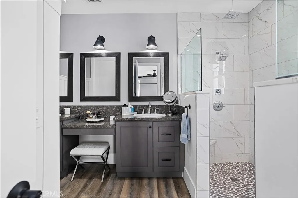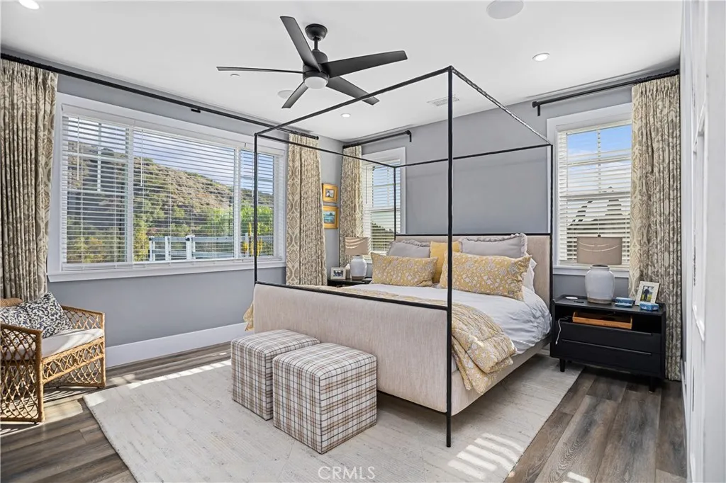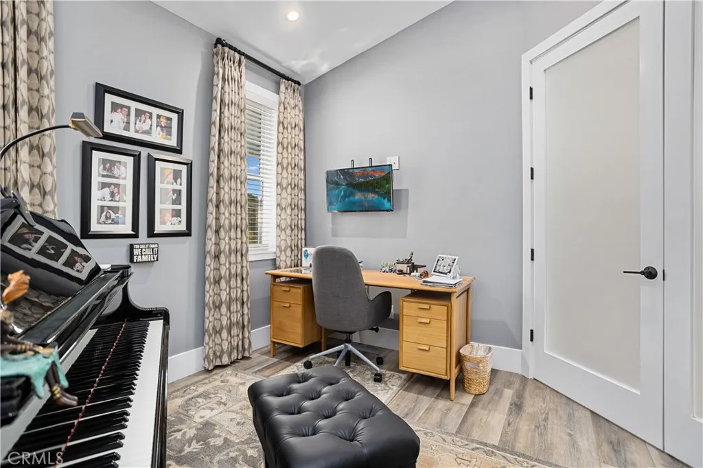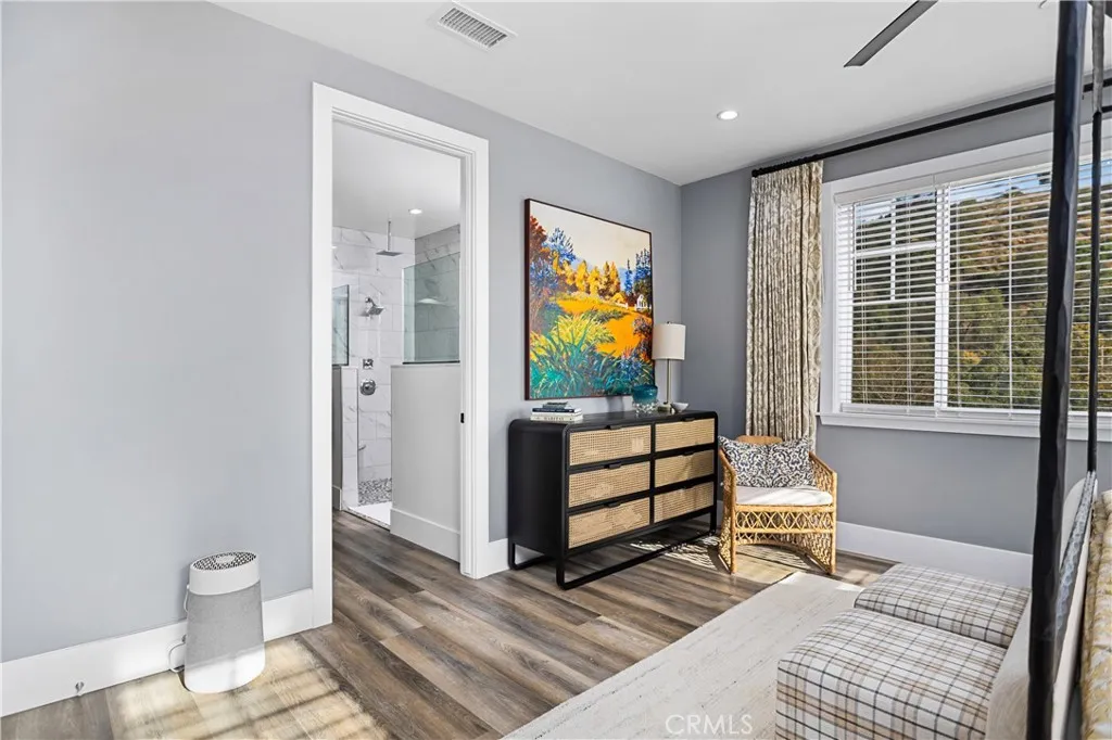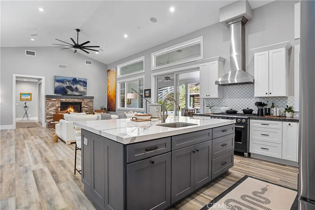 Recently repositioned to reflect exceptional value, this newer construction modern farmhouse estate offers the perfect blend of privacy, design, and resort-style living on nearly 5 acres in the highly sought-after De Luz community. Set against a backdrop of sweeping valley and hillside views, the outdoor space is truly a standout—featuring a custom pool and spa perfectly positioned to capture the scenery, a covered patio ideal for year-round entertaining, a fully equipped outdoor kitchen, and professionally designed landscaping complete with irrigation, lighting, and a fenced pool area for added privacy and convenience. Inside, the open-concept layout is filled with natural light and elevated by vaulted ceilings, Milgard Tuscany windows, luxury vinyl plank flooring, tall baseboards, and a custom fireplace that anchors the main living space. A whole-house audio system extends throughout the interior, patio, porch, and garage, creating a seamless indoor-outdoor lifestyle. The chef’s kitchen is both functional and refined, showcasing an oversized island, quartz countertops, tile backsplash, soft-close cabinetry, stainless steel appliances, and a Café Professional electric oven. The adjacent dining area offers flexibility with plumbing in place for a future wet bar or coffee station. The home features 4 bedrooms and 3 upgraded bathrooms, including a private office with French doors—ideal for remote work or a flexible bonus space. The primary suite serves as a peaceful retreat with 9-foot ceilings, a custom walk-in closet, and a spa-inspired bathroom complete with dual vanities and an oversized dual walk-in shower with rain heads. Additional highlights include owned solar, tankless and new water heaters, a whole-house fan, Lifesource water system, whole-home alarm, EV charging-ready outlet, owned Starlink system, and extensive TV hookups. A fully insulated and drywalled 4-car garage with built-in speakers adds both function and versatility. Ideally located in De Luz, this property offers the rare combination of tranquil, rural living just minutes from Temecula’s wineries, Old Town dining, shopping, and top-rated schools—delivering a lifestyle that is both peaceful and connected.
