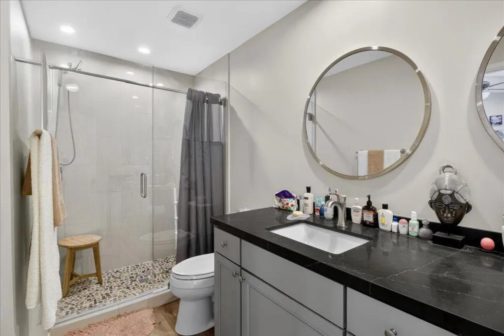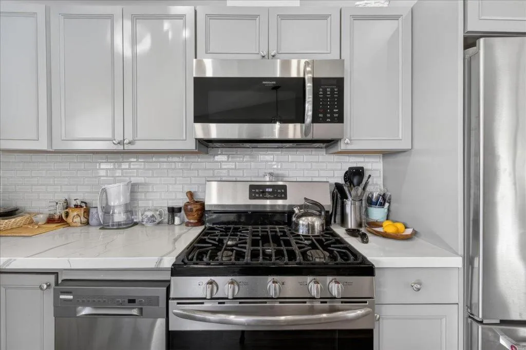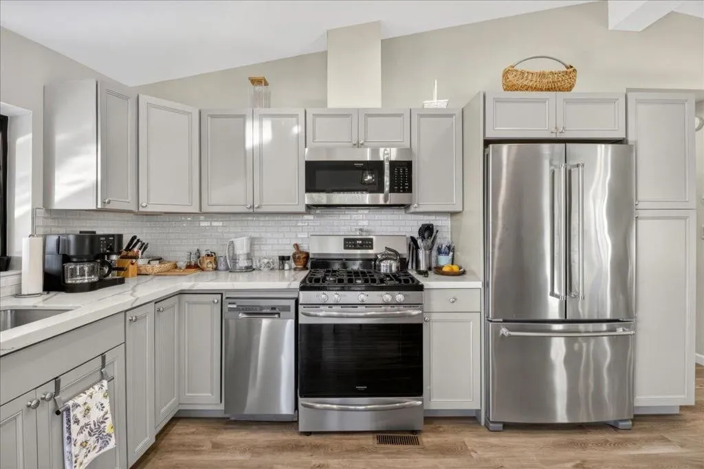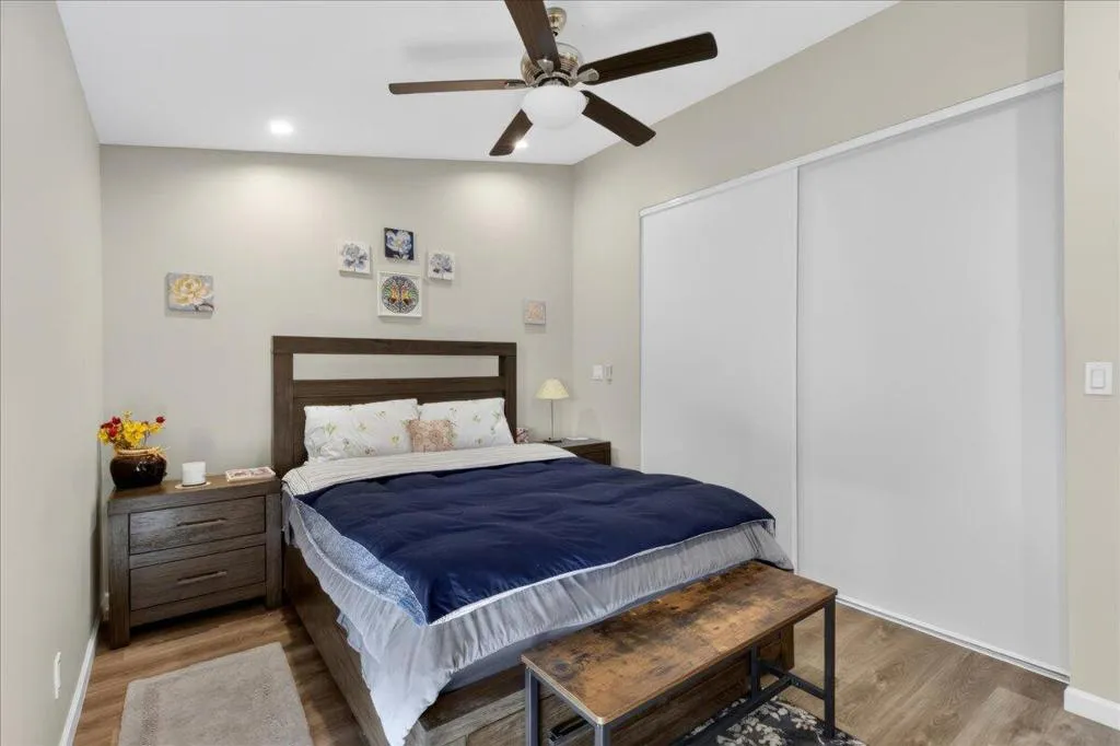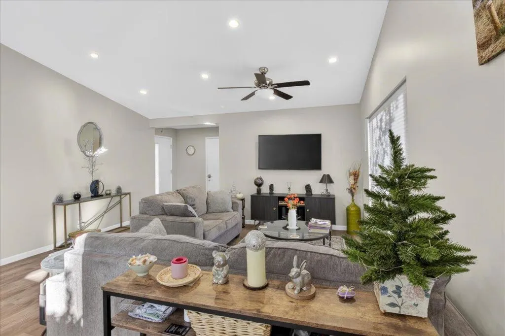 Beautiful remodel in 2021 in the Palm Desert gated community of Golden Sun Estates. Kitchen includes newer appliances, quartz countertops, open floor plan with vaulted ceilings. Newer doors and windows, recessed lighting and custom window treatments. Oversized primary bedroom and bath with dual sink vanities and updated tile showers in both bathrooms. Two-car attached garage with new epoxy floor. Covered patio, greenbelt that offers extra space between properties in the back yard. Mountain views from the patio, South facing exposure, low maintenance yard with citrus trees. Golden Sun Estates offers tennis court, community pool and spa, greenspace and pet friendly. The home is located close to shopping centers, restaurants and stores. Low HOA dues and well-maintained common areas.