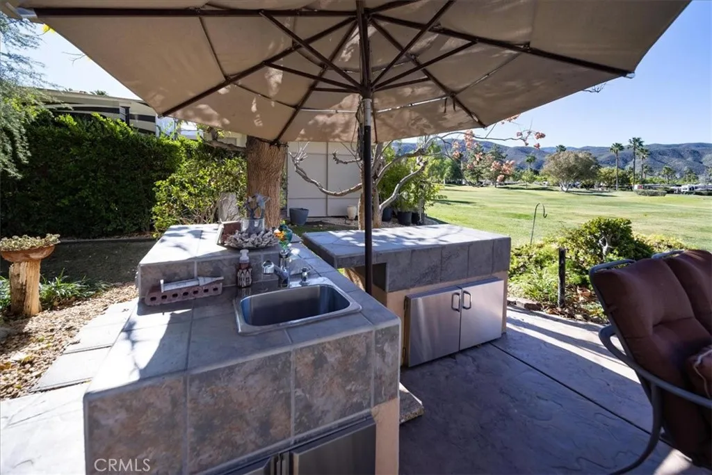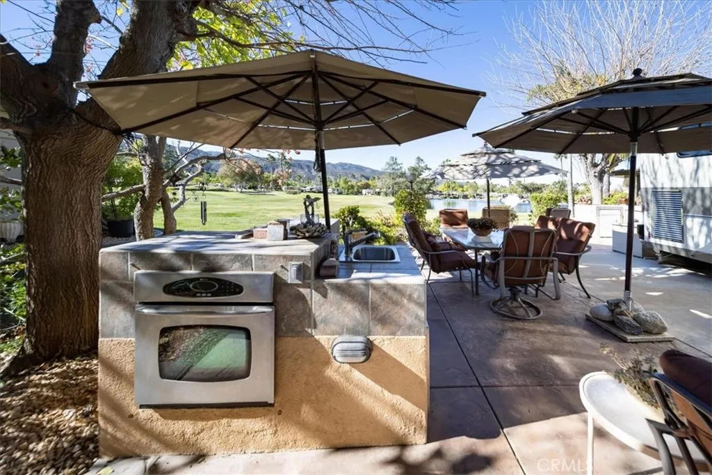 Discover your perfect retreat on a truly expansive lot offering the ultimate in outdoor luxury. This standout space features a built-in barbecue, a washer and dryer, a full kitchen with an oven, three convenient islands, and a refrigerator-freezer combo. Enjoy the shade of an Alumawood cover and pick fresh lemons right from your own tree. Step outside to a spectacular setting with panoramic views: a gorgeous waterfall, a huge grassy knoll, a large pond, and a prime view of the golf course’s fourth hole. Whether you're relaxing, entertaining, or simply soaking in the surroundings, this lot is a rare gem. Come see what makes this location a standout in Rancho California RV Resort! In addition, Rancho California RV Resort enriches your lifestyle with a host of top-tier amenities. Owners enjoy a 14-hole executive par-3 golf course at no extra cost, along with access to five pools and jacuzzis, tennis and pickleball courts, a dog park, two clubhouses, a fitness center, a fishing pond, horseshoes, and a bocce ball area. The resort is guard-gated with no age restriction, ensuring a welcoming environment for all. Monthly HOA fees cover unlimited use of the golf course, all amenities, trash pickup, and water, sewer, and common area maintenance. With financing available, the RV Resort offers the perfect blend of a private property lifestyle and a vibrant community atmosphere.