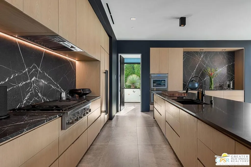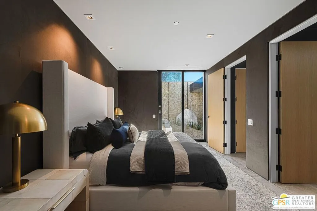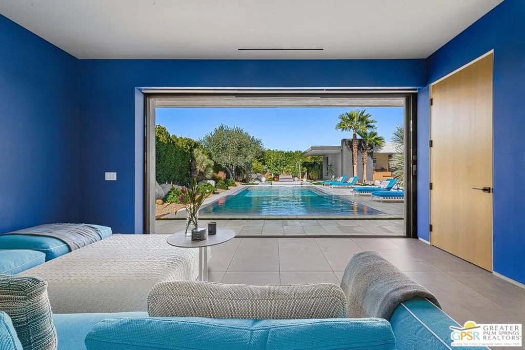 A residence of true architectural distinction, 3 Echo Lane is a sculptural modern home designed by Sean Lockyer, AIA, principal architect of the internationally recognized Studio AR&D. Known for refined modernism and materially expressive design, Lockyer's work is celebrated for its clarity of form, thoughtful proportions, and seamless relationship to landscape qualities fully realized in this exceptional residence. Built with steel beam construction, the home exemplifies architectural integrity, structural honesty, and enduring craftsmanship. Clean horizontal lines, purposeful massing, and carefully composed sightlines frame west-facing mountain views, capturing the drama of the San Jacinto range and delivering unforgettable desert sunsets. Walls of Fleetwood sliding glass doors create expansive openings that dissolve the boundary between interior and exterior, a hallmark of architecturally significant modern design. Outdoor living is elevated by a dedicated pool pavilion, conceived as an extension of the home's architectural language providing shaded lounge and entertaining space while anchoring the resort-style grounds with structure, balance, and presence. The outdoor environment has been thoughtfully reimagined with a recently redesigned zero-edge pool and spa, complemented by a dramatic water wall that functions as both architectural feature and kinetic art, enhancing sound, movement, and visual calm. Interiors reflect a gallery-like restraint enriched by bespoke finishes and couture-level details. The primary bathroom is a sculptural retreat, highlighted by a freestanding travertine soaking tub carved from a single monolithic block of stone a rare artisan element more commonly found in museum-quality design. Select walls are appointed with Gucci and Phillip Jeffries wall coverings, adding texture, depth, and refined luxury. California Closet systems are seamlessly integrated to preserve clean architectural lines while enhancing functionality. A Control4 home automation system supports modern living with intuitive control of lighting, window coverings and audio/video, ensuring comfort without compromising design intent. Architecturally significant, structurally sophisticated, and meticulously curated, 3 Echo Lane represents a rare opportunity to acquire a modern desert residence where architecture, landscape, and livability convergeset within the prestigious enclave of Echo at Rancho Mirage.