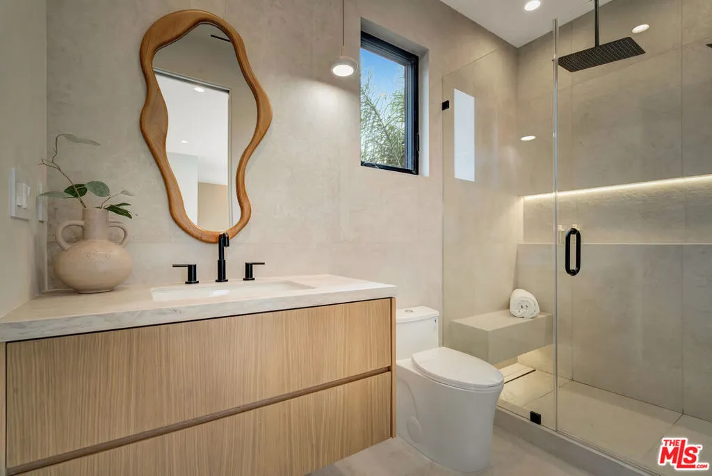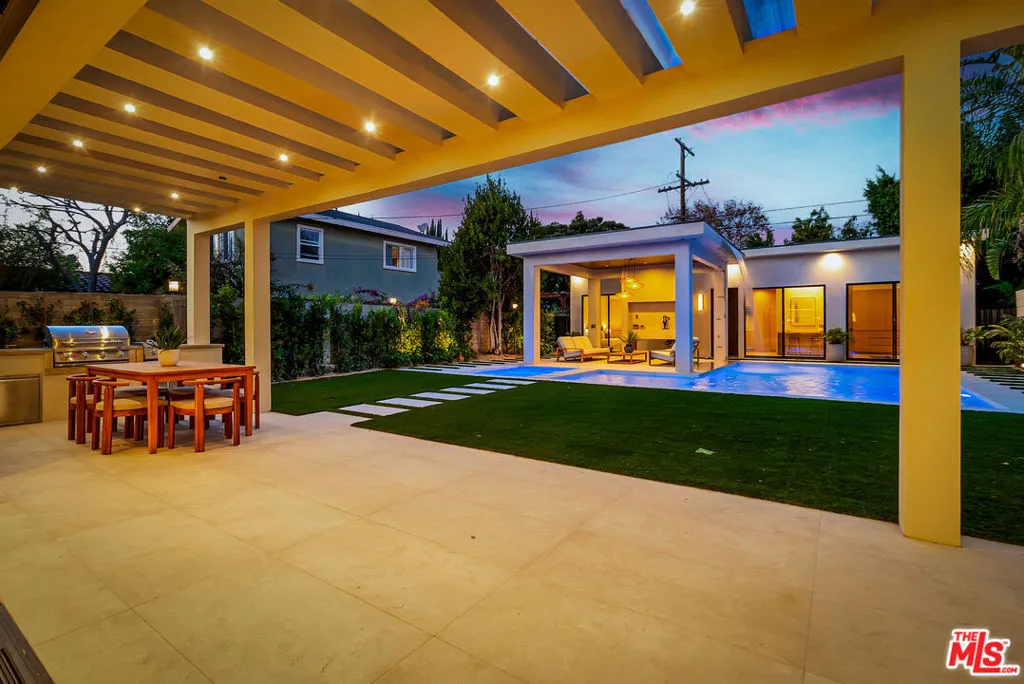 Welcome to this newly built, gated residence in the heart of Valley Village, where thoughtful design and refined finishes define every space. The main home offers 5 bedrooms and 4 bathrooms, featuring a light-filled open floor plan with strong indoor-outdoor connection, ideal for modern living and effortless entertaining. Interiors are finished with a curated palette of high-end materials, custom built-ins, and premium appliances. The primary kitchen is both functional and visually striking, anchored by sleek cabinetry and generous workspaces, while a secondary prep/dirty kitchen provides discreet support for entertaining on any scale. A large laundry room, attached 2-car garage, and additional driveway parking add everyday convenience. Walls of glass open to a resort-inspired backyard designed as an extension of the living space, complete with a built-in BBQ, cabana, Baja shelf pool, and spa creating a private setting for year-round use. The detached 2-bedroom, 2-bath ADU mirrors the home's design aesthetic and offers exceptional flexibility, ideal for a studio, office, gym, guest quarters, or extended living, all with its own sense of privacy. Set behind gates in one of Valley Village's most sought-after neighborhoods, the property is centrally located near shopping, dining, transportation, and houses of worship. A rare opportunity to own a newly built, design-driven home that balances style, function, and versatility.