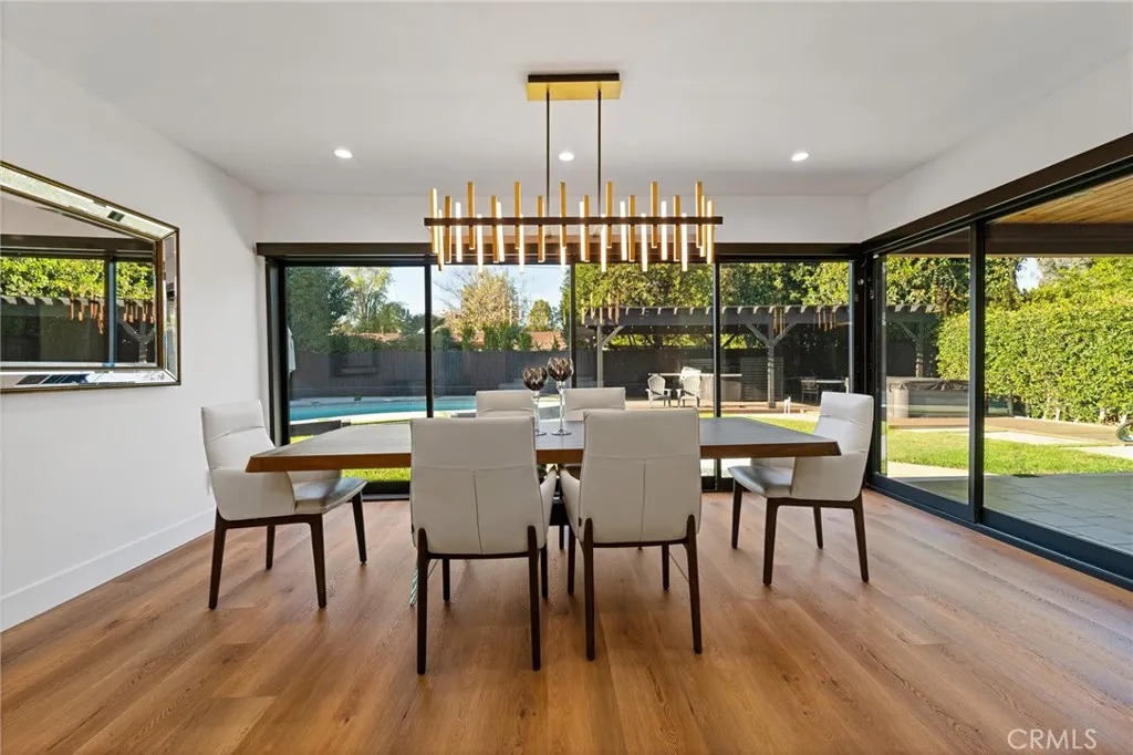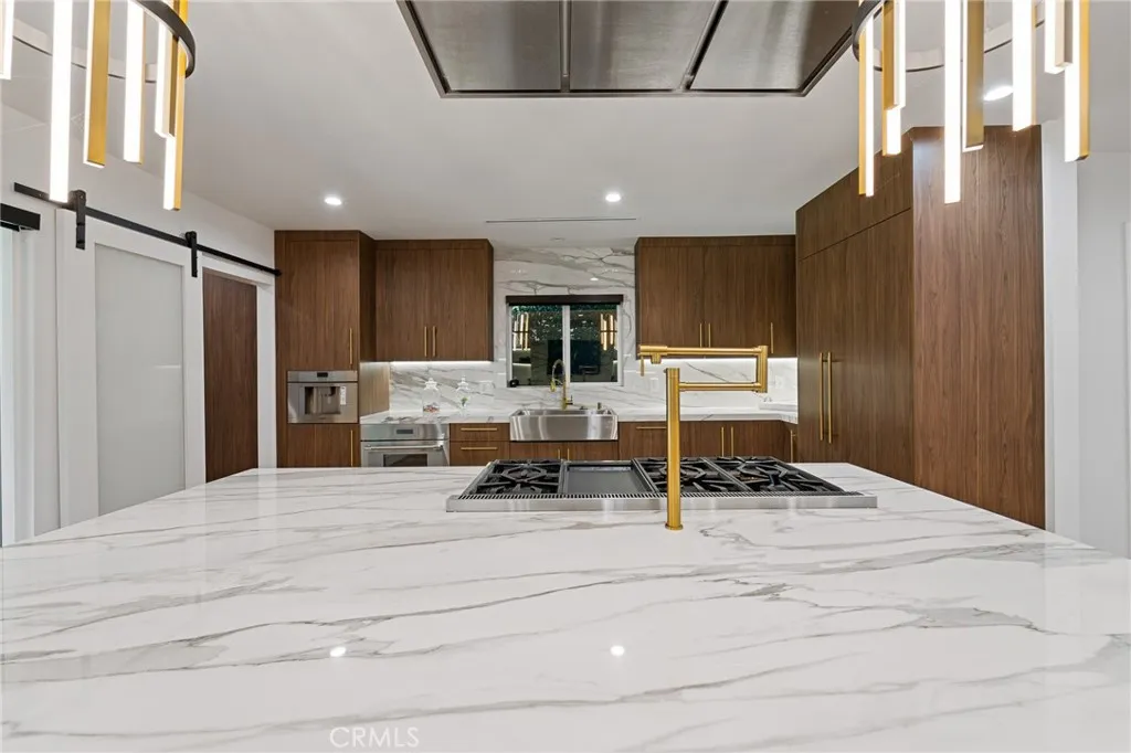 Set behind a private gate with an oversized circular driveway, this fully remodeled contemporary estate offers the perfect blend of luxury, privacy, and income potential in the highly sought-after Walnut Acres neighborhood of Woodland Hills. The single story main residence features soaring 11 foot ceilings and an open, light filled floor plan designed for modern living. At the heart of the home is a chef’s kitchen showcasing top of the line appliances, custom cabinetry, a dramatic full slab backsplash, a waterfall oversized island ideal for entertaining. The primary suite is a true retreat, offering a spacious custom walk in closet, an additional large secondary closet, and a spa inspired primary bathroom with an oversized custom shower with a glass pocket door opening to the backyard. Two additional generously sized bedrooms and two beautifully appointed bathrooms complete the main home. A standout feature is the separate ADU, complete with its own private entrance, separate address, and individually metered gas, water, and electricity, perfect for rental income, extended family, or a private office. Step outside to a resort-style backyard featuring a sparkling pool and spa, expansive outdoor space, and a large covered patio with a built-in barbecue, ideal for year round entertaining.Conveniently located close to shopping, dining, and major retail destinations, this exceptional property offers luxury living with unmatched versatility in one of the Valley’s most desirable enclaves.