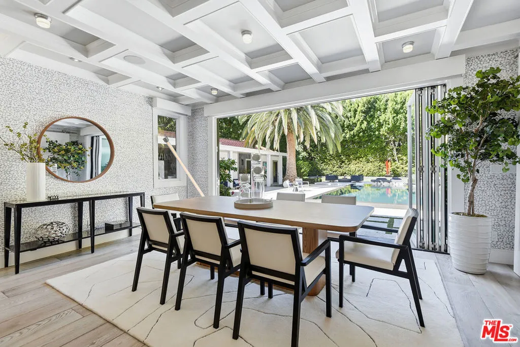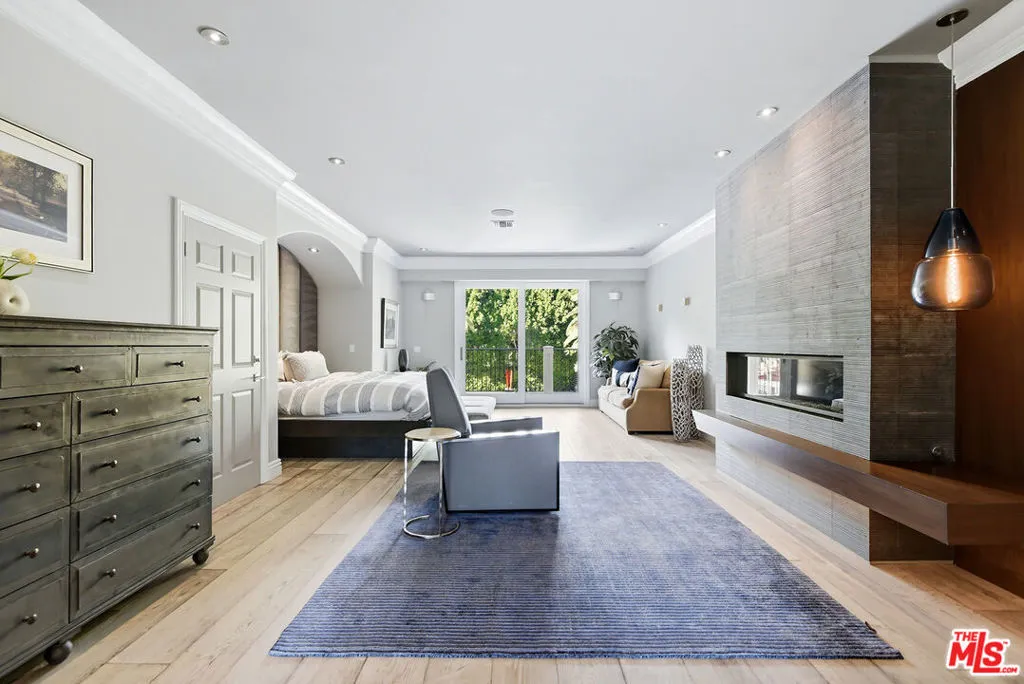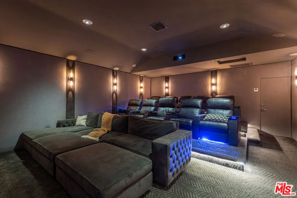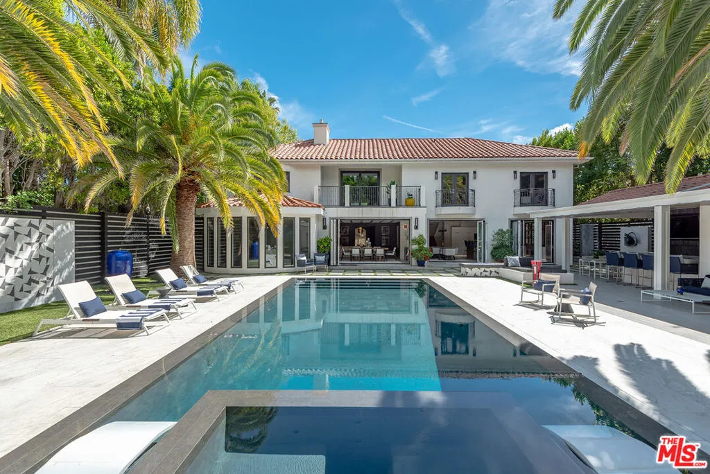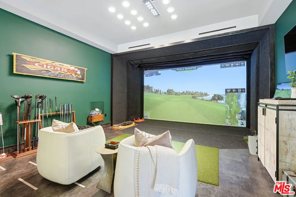 Supremely private Stately gates with imposing 25' high hedges hide a true miracle of a home that serves as the ideal host for fantastic entertainment. State of the art Movie theater. State of the art Golf Simulator with cigar lounge that has humidifier filtration for fresh clean air. Bold designer choices abound - gorgeous on-trend fixtures and dynamic wallpaper coverings. Two downstairs en suite bedrooms, two other upstairs en suite large bedrooms. Another bedroom converted into a complete spa with wet and dry sauna and massage table. The other bedroom adjacent to the Primary suite has been opened to serve as a huge killer office. Upstairs laundry has been added to complement the downstairs laundry off the secondary staircase. This is truly a luxurious floorplan. La Cantina folding doors open to reveal an immaculate backyard that blows you away. Placid infinity pool reflects the subtle exterior lighting with various daybeds and conversation lounges surrounding cozy fire pits. The outdoor kitchen offers a veritable restaurant experience with the pizza oven, fireplace, TV and bar.