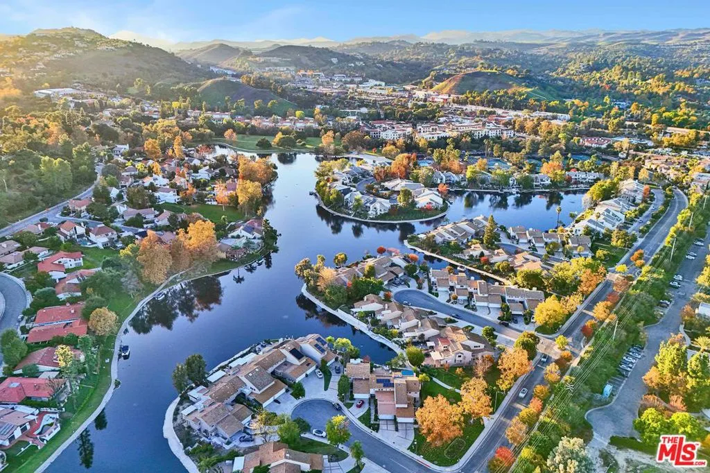 Absolutely stunning, remodeled lakefront townhome on one of the largest lots on Calabasas Lake. This end-unit corner location offers unmatched privacy with extra lake frontage and in ground spa set against a breathtaking a view of the lake. The home has been thoughtfully updated from top to bottom. The light-filled living room with soaring ceilings showcases tranquil views. The freshly revamped eat-in gourmet kitchen impresses with polished stainless-steel appliances, granite countertops, and beautifully refreshed cabinetry. An adaptable downstairs bedroom makes a perfect den, studio, or 3rd bedroom to suit your needs. Upstairs, the elevated primary suite feels like a private retreat, complete with a dedicated office or nursery space and soothing lake vistas. The fully refreshed spa-inspired primary bathroom with soaking tub and an oversized walk-in shower. A generously sized secondary bedroom offers its own en-suite bathroom. Step outside to an entertainer's patio oasis outfitted with an in-ground spa, cascading waterfall, built-in BBQ center, and mesmerizing lake views. Perfectly positioned near Calabasas Swim and Tennis Center, The Commons at Calabasas, and the Calabasas Farmers Market. Truly a one-of-a-kind home in an unbeatable setting!