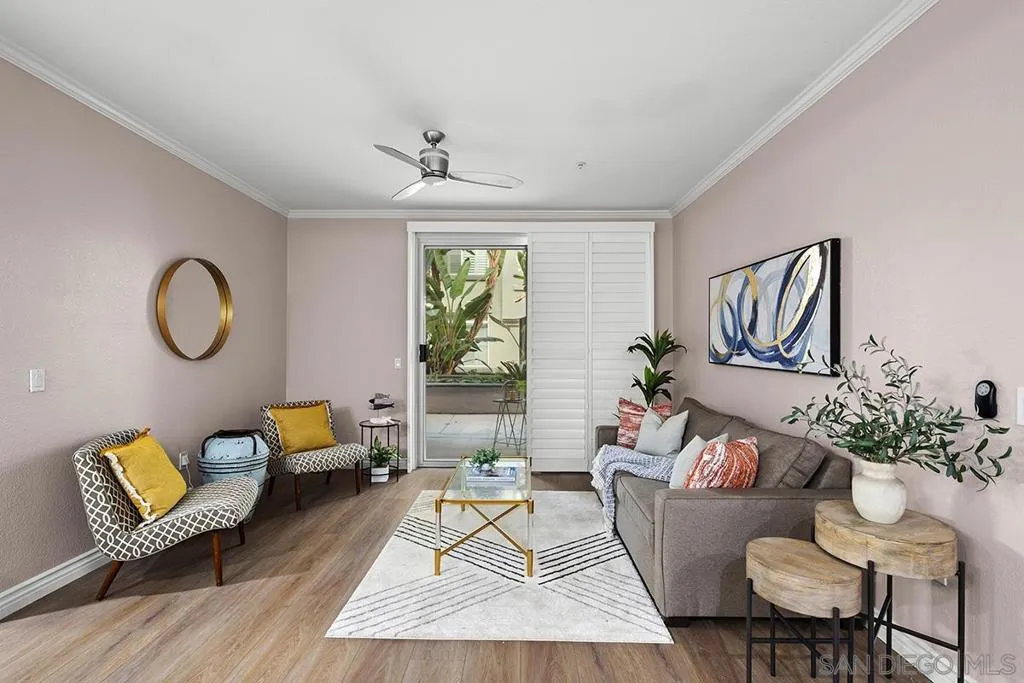 Welcome to your future oasis at 4165 Executive Drive, Unit F107, nestled within the illustrious Regents La Jolla Community. Get ready for a rollercoaster ride of charm and luxury in this beautiful first-floor unit right in the heart of UTC/La Jolla. Step through the front door and prepare to be dazzled. On one side, you'll find a roomy primary bedroom, complete with a walk-in closet that's practically begging to be filled with your shoe collection. Meanwhile, on the other side, there's a generous secondary bedroom, just a hop, skip, and a jump from a full bathroom with a spacious walk-in closet. Featuring newer luxury vinyl plank flooring and shutters throughout. Beautifully appointed kitchen with a bar counter open to your formal dining and living areas with sliding door access to your private patio. The Regents La Jolla brings the resort experience to your doorstep. You'll have a pool, a spa, and cabanas right next door. Plus, a private movie theater, a fitness center, a yoga studio, a game room, and a swanky clubhouse. They even have cooking classes, a business center with copying services, a clubhouse with a piano (for those impromptu jam sessions), and billiards. Now, for the cherry on top – two assigned tandem parking spaces in the gated and underground garage. No more circling the block for parking; you're the VIP here. But the location is the real kicker! You're smack dab in the middle of everything. Highways, public transport, and shopping are all within arm's reach, including UTC Westfield Mall, I-5, I-805, I-52, I-56, Even the beauty of La Jolla is practically at your doorstep. Don't miss out on this gem – your future abode at 4165 Executive Drive, Unit F107. It's not just a home; it's an adventure waiting to happen.