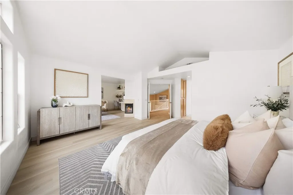 The primary suite is generously sized and includes an adjoining retreat area, complete with an angled fireplace and built-in desk—a flexible space perfect for a home office, reading lounge, or quiet escape. Originally, the builder offered this retreat as an optional additional bedroom, highlighting the home’s adaptable layout.