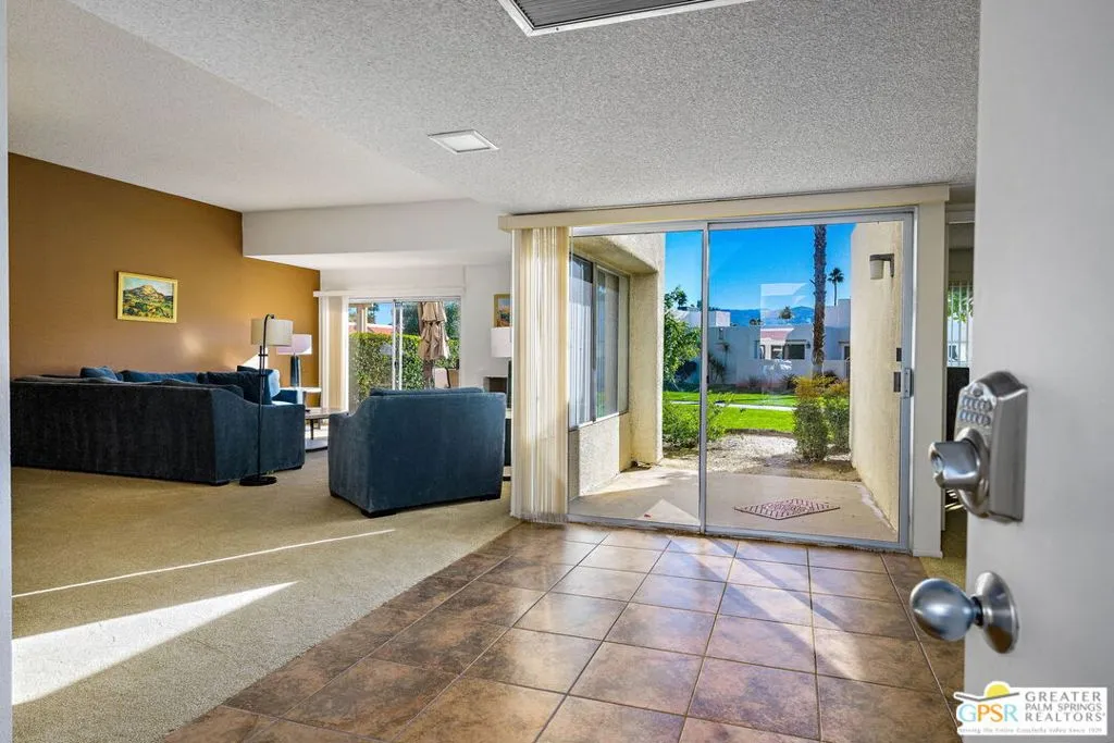 New Price Adjustment! Seller is quite motivated - Beautifully maintained and furnished 3-bedroom, 2-bath condo located in the coveted, gated community of The Fairways in Palm Springs. The single-level floor plan boasts a spacious living area, ideal for relaxation and entertaining, while the fully appointed kitchen is perfect for preparing meals to enjoy in the bonus dining area. The primary bedroom is ensuite and is bright and inviting, with ample closet space and storage. Two more bedrooms are down the corridor, and a large bath. There is a lovely bonus room off the kitchen with its own entry. In the initial plans it was to be a garage but the original owners chose to make it a room instead. There is still a garage door that opens to a shallow storage space. A family used this for years as a beloved second home and many happy memories were created here. The unit is just steps away from the pool! Residents of The Fairways enjoy resort-style amenities, including a clubhouse, multiple pools, multiple tennis and renowned pickleball courts. The lush green grounds create a peaceful oasis, perfect for soaking up the desert sun or enjoying an evening stroll. The location is unbeatable just moments from the vibrant shops, dining, and nightlife of downtown Palm Springs, as well as the renowned Tahquitz Creek Golf Club for those who enjoy a round of golf under the desert sun. Experience the best of Palm Springs living in this beautiful, mid-century modern condo. It s the perfect place to call home or a serene getaway! Land lease has been extended to 2071.