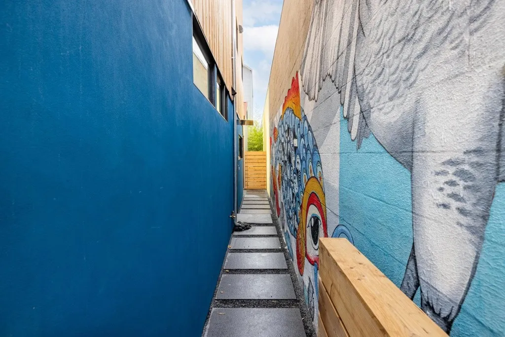 One of six sleek, sustainably built 2BD/1.5BA newly completed residences rise on a once-vacant and walkable infill site just blocks from parks, cafés, shopping, and transit. Each home flips convention with an inverted floor plan—private bedrooms below, open living and kitchen space above—and a rooftop deck showcasing Bay breezes and hill views. Thoughtful design brings in abundant daylight through large Marvin windows with unconventional sunscreens, while tight construction, high R-value insulation, and HRV ventilation ensure comfort and efficiency. Eco-forward features include permeable paving, drivable grass parking, natural wood siding, on-demand hydronic heat, recycled glass counters, low-flow fixtures, dual-flush toilets and individual 220 outlets for EV charging. Ten new trees, including fruit varieties, add beauty and shade. You'll find this modern Berkeley living smart, sustainable, and unapologetically stylish. Pricing may differ per unit.