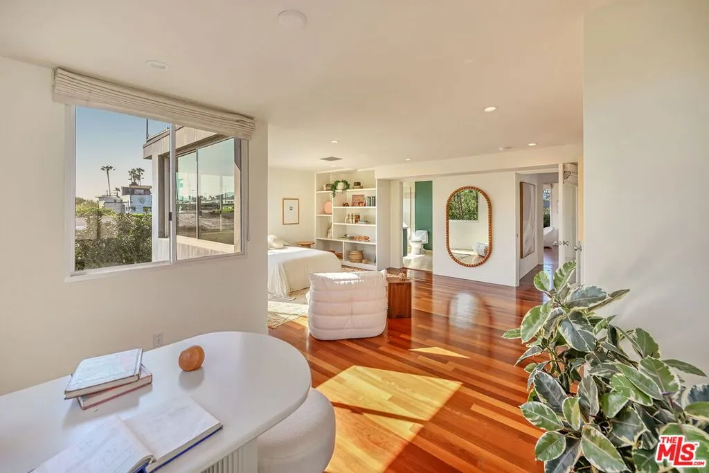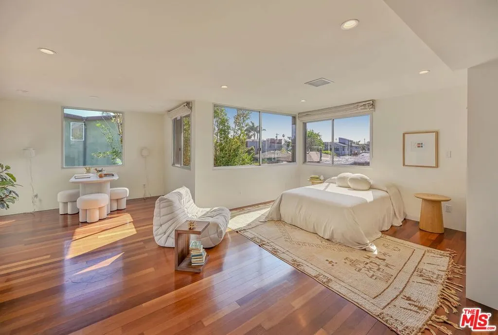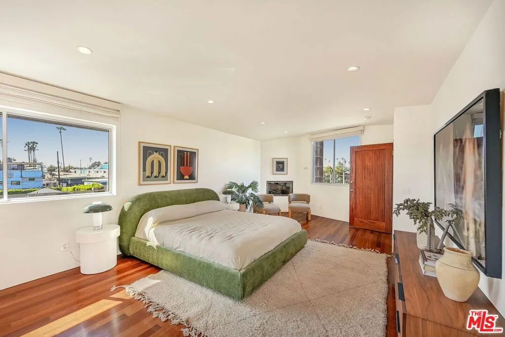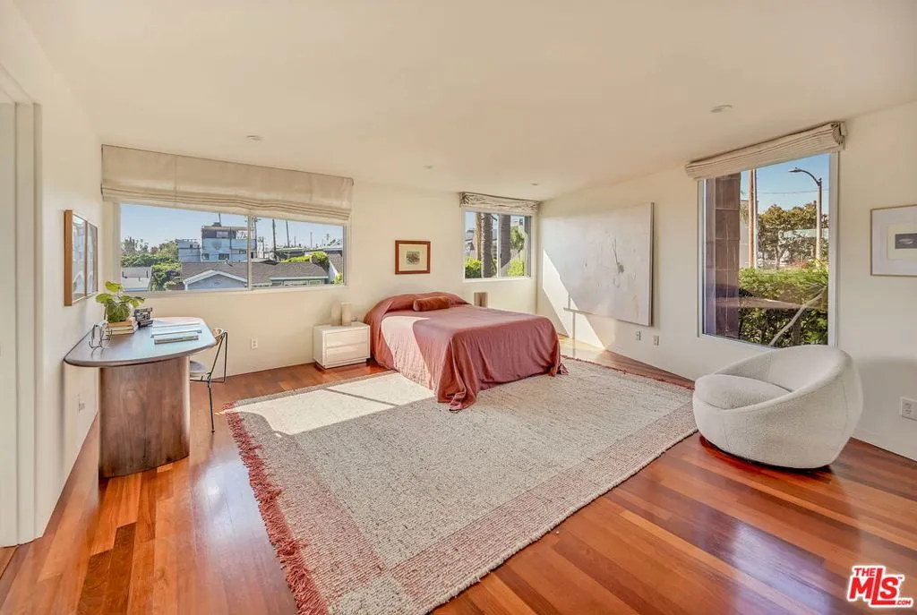 This magnificent architectural compound is set on a large lot just steps from the Venice canals and Abbot Kinney Boulevard. Located in the coveted Silver Triangle, this private and peaceful retreat provides effortless indoor-outdoor living as well as having exceptional entertaining space. The main residence has three levels. The first floor features an open, light-filled floor plan, walls of sliding glass and a chef's kitchen that flows seamlessly into expansive living and dining areas leading to the garden. The second level offers two large guest bedrooms with ample closet space that share a Jack and Jill bathroom. The entire third floor is devoted to a stunning primary suite featuring a fireplace, spa-like bathroom, walk in closet and an extremely spacious balcony. The fourth bedroom is located in the large guest suite above the garage that could also be used as a media room or office.This rare gem offers the very best of Venice living with privacy, architectural distinction, a grassy yard with fruit trees and an enormous three car garage. Don't miss the very best of Venice living with the beach, Gjelina, Felix, Erewhon, The Venice Farmers Market, Canal Market and all Venice Beach hotspots a short distance away.