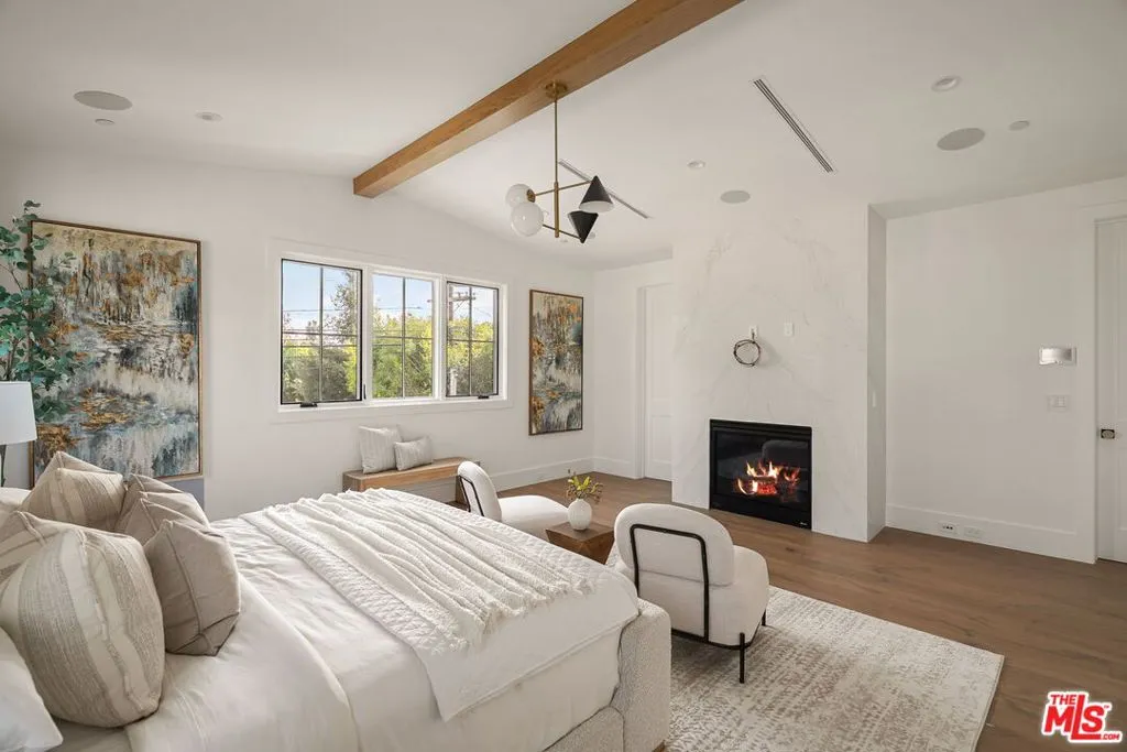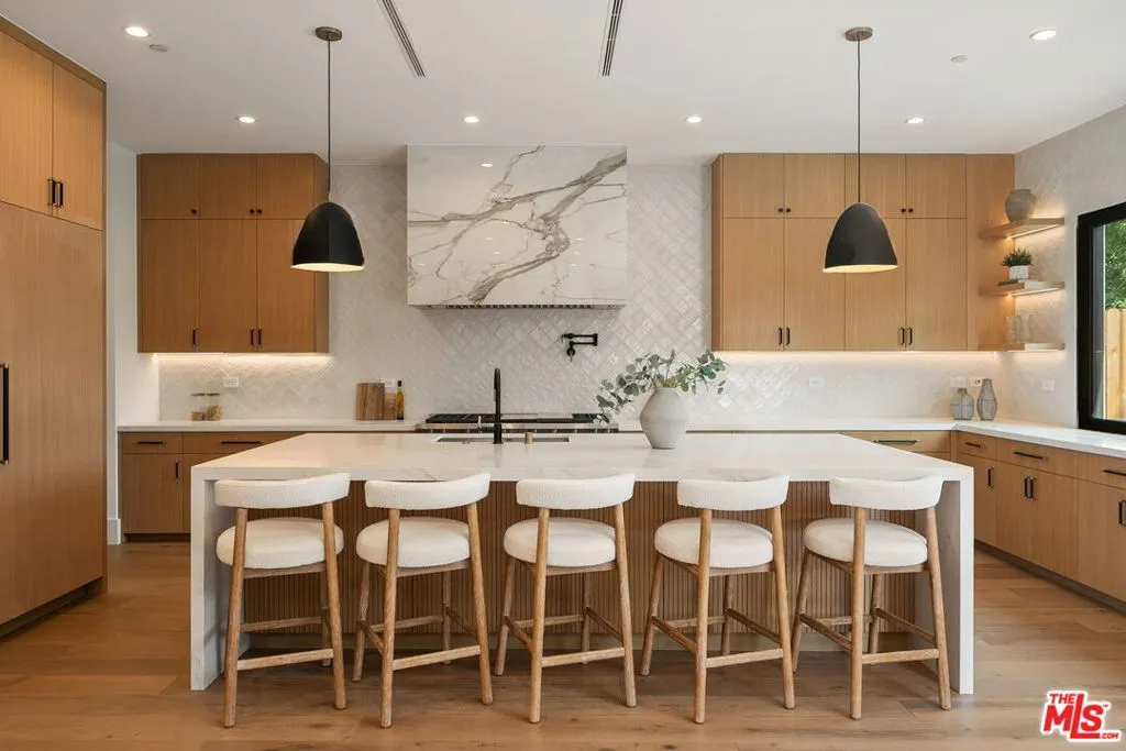 A sophisticated interpretation of modern farmhouse design, this newly constructed residence by DiNali Construction is defined by its impressive scale, refined craftsmanship, and bespoke detailing throughout. Spanning approximately 3,950 square feet, the home offers 5 bedrooms and 5.5 bathrooms, thoughtfully designed to accommodate both elevated entertaining and effortless everyday living. Upon entry, the residence reveals custom architectural accents, curated finishes, and intentional design elements that distinguish every space. Expansive living and dining areas flow seamlessly into a stunning chef's kitchen, appointed with top-of-the-line appliances, custom cabinetry, and a grand center island that serves as the heart of the home - ideal for hosting gatherings or casual family meals. Designed for seamless indoor-outdoor living, the home features multiple entertaining areas, including upper and lower-level patios that extend the living experience outdoors. The private backyard is highlighted by a contemporary pool with a dramatic waterfall feature, creating a serene yet striking focal point, while a large covered patio provides an ideal setting for al fresco dining and relaxed outdoor living. The primary suite serves as a tranquil retreat, complete with a spa-inspired bathroom and a generous walk-in closet. Each additional bedroom is generously scaled and includes its own en-suite bathroom, ensuring comfort and privacy throughout. Additional highlights include a spacious, well-appointed laundry room, smart home capabilities, security infrastructure, and thoughtfully integrated custom storage solutions. Meticulously crafted with DiNali Construction's signature attention to detail, 1742 Preuss Rd offers a lifestyle defined by comfort, elegance, and modern functionality, ideally situated in the desirable Crestview neighborhood, just moments from Beverlywood, Culver City, Beverly Hills, and the best of Los Angeles.