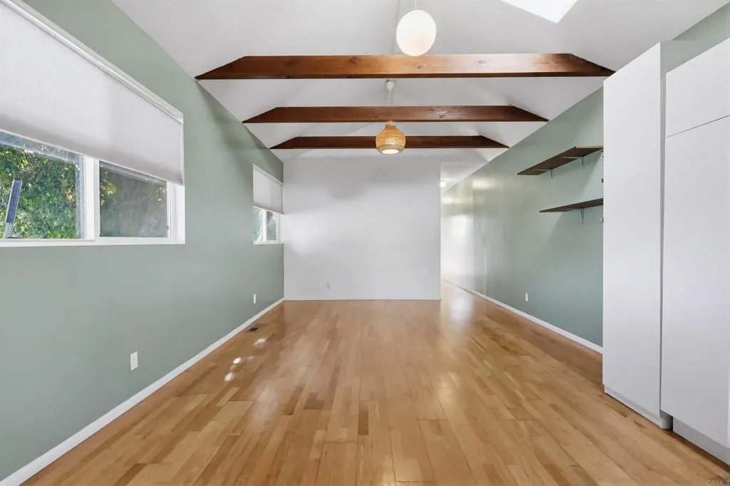 This charming 2-bedroom, 1-bathroom starter home offers approximately 1,100 sq ft of bright, inviting living space in the historic Pico-Union neighborhood of South LA—perfect for first-time buyers, young professionals, or small families seeking an easy move-in ready opportunity. Step inside to discover a light-filled, open floorplan accentuated by soaring vaulted ceilings and stunning exposed wooden beams that create an airy, modern yet warm ambiance. The thoughtful layout flows seamlessly from the living area to the kitchen, making everyday living and entertaining feel effortless. Best of all, the living room boasts stunning views of downtown Los Angeles, offering a beautiful backdrop of the city skyline that brings the energy of LA right into your home. The home is completely turn-key and move-in ready, with fresh updates throughout. A versatile bonus room provides endless possibilities—transform it into a productive home office, cozy media room, or playful children's play area to suit your lifestyle. Outside, the back carpark doubles as a private patio space, ideal for morning coffee, weekend relaxation, or adding your personal touch with potted plants and string lights. Families will love the unbeatable location—directly across the street from Magnolia Avenue Elementary School and just a short walk to West Adams Preparatory High School, making school commutes a breeze. Conveniently positioned near the Interstate 10 & 110 interchange, you're just minutes from downtown Los Angeles, including the Crypto.com Arena, Los Angeles Convention Center, USC, and the vibrant energy of city living—without the hassle. Explore nearby South and Central LA gems like Exposition Park (home to the Natural History Museum and California Science Center), the historic West Adams district with its stunning architecture and emerging dining scene, Leimert Park for live jazz and cultural events, and the diverse food and community vibes of Pico-Union itself. Don't miss this rare chance to own an affordable, stylish entry into LA homeownership in a prime, family-friendly spot with incredible downtown views. Schedule your showing today—this one won't last!