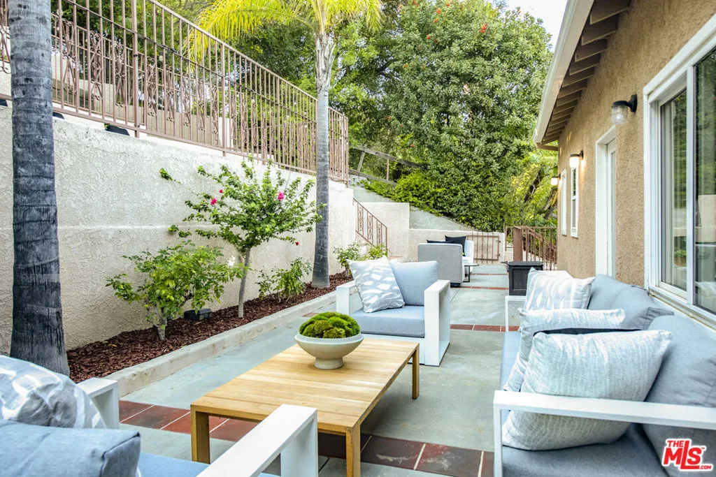Set on a quiet cul-de-sac south of the Boulevard in the heart of Sherman Oaks, this beautiful tri-level estate captures sweeping city views from nearly every room, with multiple balconies designed to take full advantage of the setting. Offering 6 bedrooms and 4.5 baths, the home delivers a thoughtful, flexible layout that balances everyday comfort with effortless entertaining. The private entry level features a generous bedroom with en-suite bath and an expansive bonus room, ideal for guest quarters, home office, gym, playroom, or media space. The main living level is bright and open with windows throughout, anchored by a spacious family room with hardwood floors, built-in sound system, fireplace, and wet bar, flowing easily to balcony seating for indoor-outdoor living. A warm living room, dining area framed by city views, and contemporary kitchen with center island, built-in appliances, and granite countertops create a natural gathering space, with direct access to an outdoor patio for relaxed al fresco dining. An additional bedroom currently used as a home gym, full bath, and laundry room complete this level.Upstairs, four bedrooms and three full baths provide a true retreat, highlighted by a vaulted primary suite with fireplace, dual walk-in closets, hardwood flooring, and a beautifully remodeled spa bath with granite counters and freestanding soaking tub. A second primary bedroom with remodeled bath, along with additional bedrooms offering walk-in closets and balcony access, complete the upper level. Outdoors, a heated lap pool and multiple entertaining patios invite year-round enjoyment while taking in the surrounding views. An oversized two-car garage offers ample storage and everyday convenience.Located minutes from top-rated schools including The Buckley School, with easy access to Ventura, Sepulveda, Whole Foods, and nearby Los Encinos State Historic Park, this residence offers a rare blend of privacy, views, and central Sherman Oaks living.