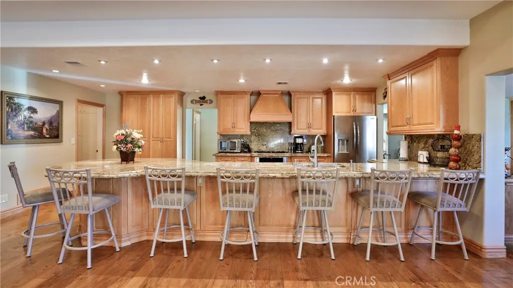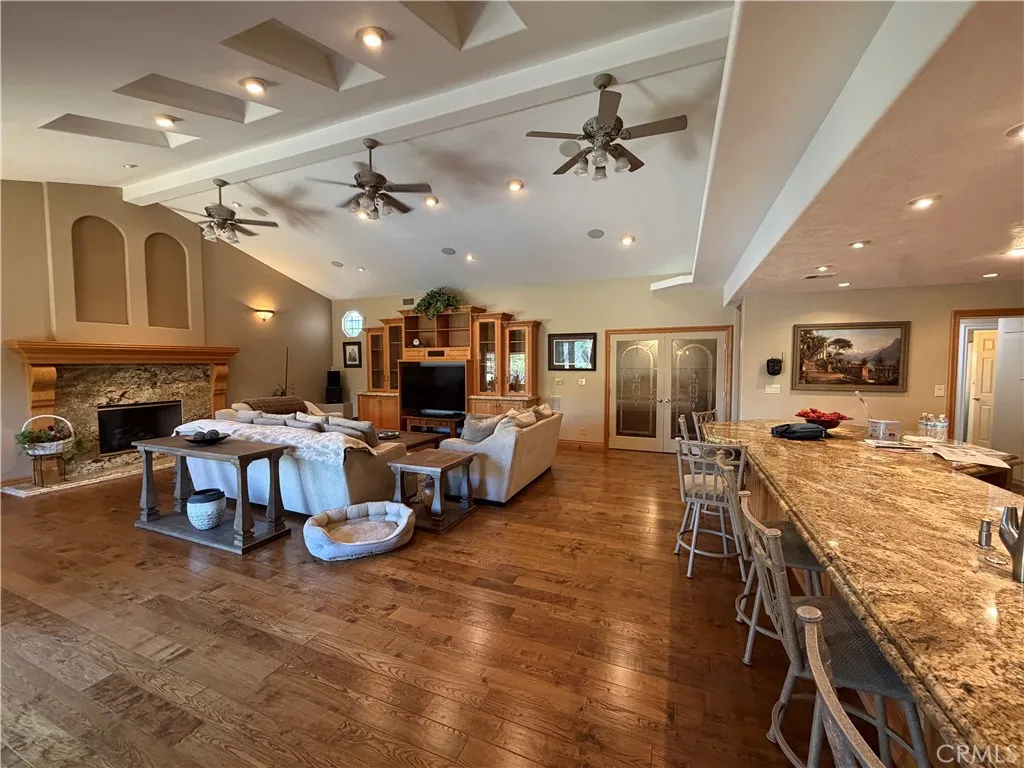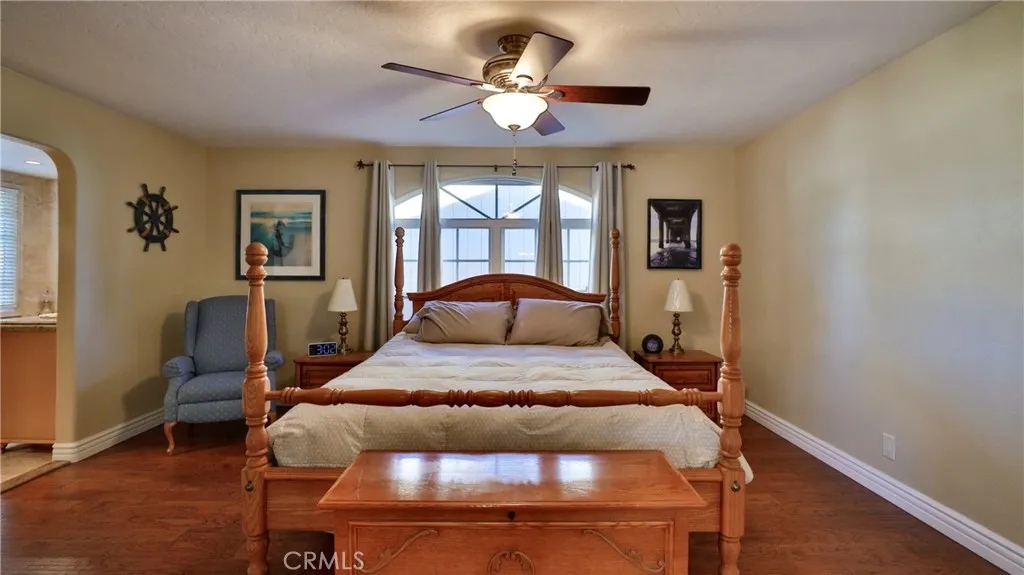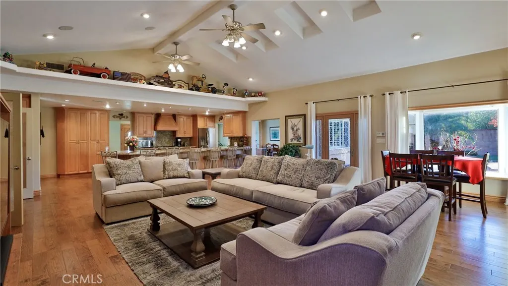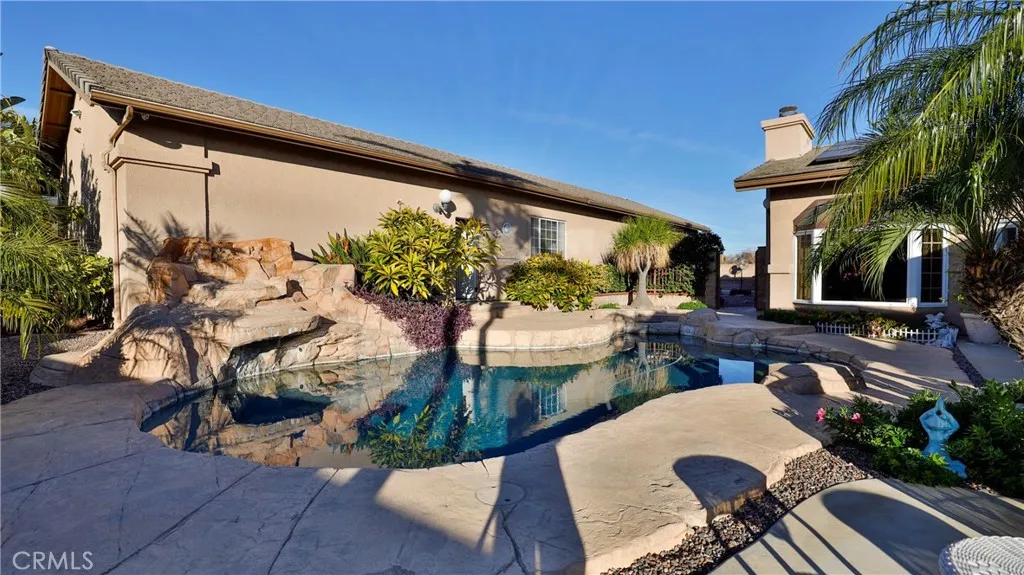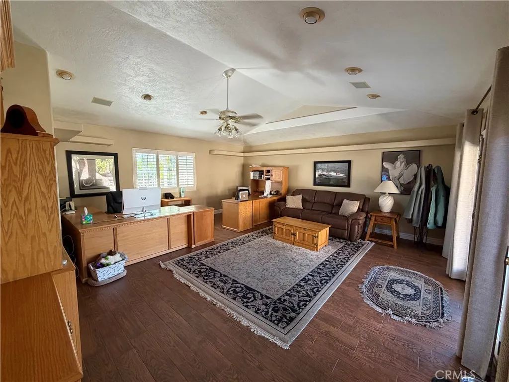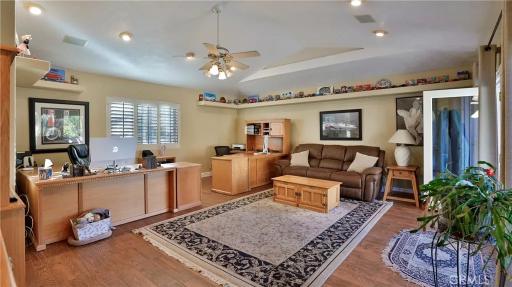 Welcome Home Move in and relax! This beautiful Upland home is ready for you to enjoy from day one. Featuring a thoughtfully designed layout, this residence combines comfort, style, and functionality for a truly exceptional living experience. Interior Highlights :Three spacious bedrooms and two full bathrooms provide ample room for family and guests. Th office can be converted to another bedroom. The upgraded kitchen offers modern finishes and conveniences, seamlessly connected to the open-concept great room with a cozy fireplace and stunning views of the backyard pool. Additional living spaces include a comfortable living room, a dedicated dining room, and a large office, perfect for working from home or pursuing hobbies. Interior features include recessed lighting, plantation wood shutters, and ceiling fans throughout for year-round comfort. The primary bedroom boasts a walk-in closet with a pull-down ladder for easy access to additional attic storage. Enjoy indoor-outdoor living with a sliding door that opens to an inviting patio and sparkling pool. A hardwired alarm system ensures your peace of mind. Engineered hardwood floors enhance the living room, dining room, kitchen, and main bedroom with both beauty and durability. Two custom fireplaces add warmth and charm to the home's living spaces. Garage and Exterior Features: A 28' x 76' detached garage at the rear of the property features four new garage doors, accommodating six or more cars, a hydraulic lift, and plenty of storage cabinets and shelving for organization. An additional RV pad includes an in-ground sewer line for convenient dumping. A custom-built detached shed (150 sq. ft.) with shelving provides even more space for tools or hobbies. The home and garage are topped with a durable tile roof and double paper for additional protection. 28 solar panels offer energy efficiency and cost savings. Copper plumbing was updated in 2002, and water lines from the meter to the house were replaced the same year. The block wall was rebuilt when the garage was constructed, ensuring privacy and security. Stay tuned for professional photos that will showcase all the exceptional features this home has to offer.