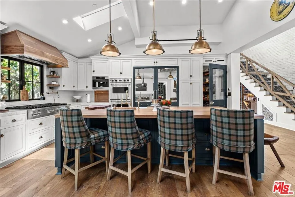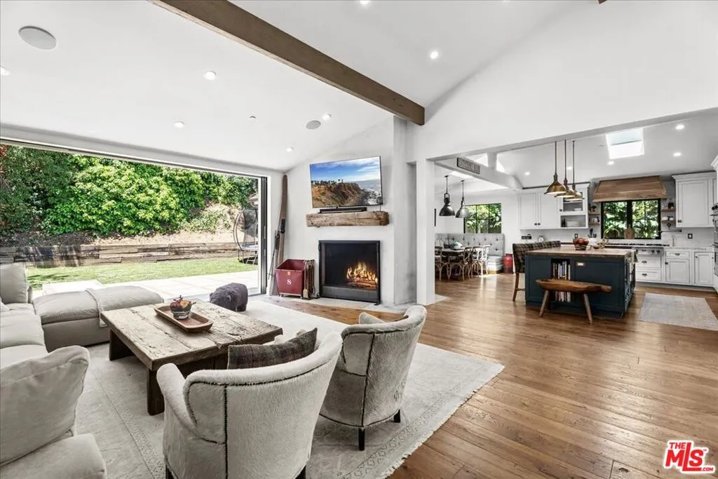 Sophisticated Hollywood Hills Sanctuary Under $4.5 Million Meticulously crafted 5-bedroom, 5-bathroom residence on a quiet cul-de-sac in one of Hollywood Hills' most exclusive enclaves. This home seamlessly blends rustic warmth with contemporary sophistication through exceptional architectural details and premium finishes. Floor-to-ceiling windows flood interiors with natural light, while four distinctive stone fireplaces anchor the living spaces. Soundproof interior walls ensure privacy. The thoughtful layout accommodates both intimate gatherings and larger entertaining. Curated details include Farrow & Ball custom paint, Forbes & Lomax fixtures, and top-tier kitchen appliances with a custom beveled-mirror Sub-Zero refrigerators. Authentic historic materials create warmth and character: Antique French limestone fireplace hearth, antique Tuscan farmhouse stone accent wall, century-old reclaimed wood beams, vintage French oak flooring from Lorraine, and authentic Scottish Tartan carpet. Five generously-sized bedrooms offer privacy, while spa-inspired bathrooms provide retreat moments. The home features a soundproof formal bar, expansive veranda, porch swing, low-maintenance landscaping, room for a pool (see AI pool rendering picture. Seller has obtained quote to build in ground pool) Direct garage access adds convenience. Exceptional craftsmanship meets livable luxury in one of LA's most coveted celebrity neighborhoods. Buyers should independently verify all information through personal inspection and appropriate professionals.