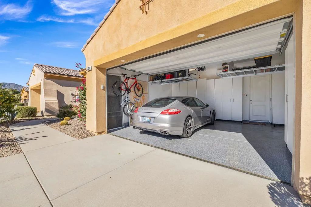 Sun, style, and resort living come together in this exceptional desert escape, perfectly positioned inside Desert Princess, offering some of the desert's best views, a highly convenient location, fee-simple land ownership, and short-term rental flexibility.Built in 2019, this gorgeous Plan 2 at Arroyos offers 3 bedrooms, 2.5 bathrooms, and 1,951 sq. ft. of open-concept living designed for both comfort and style. The living, dining, and kitchen areas flow seamlessly to a beautiful outdoor patio, creating an effortless indoor outdoor lifestyle that truly defines desert living.The backyard is a showstopper. A private, resort inspired oasis featuring a custom Pebble Tec pool and spa with tanning shelf, extensive landscaping, and serene greenbelt views. Enjoy peaceful mountain vistas, including views of the snow capped San Gorgonio Mountains, with no homes directly behind you, just open space and privacy.Inside, the home is loaded with upgrades, including custom window coverings and shutters throughout, upgraded cabinetry and granite countertops, designer lighting, ceiling fans, premium flooring, a walk-in pantry, tankless water heater, fireplace, and 10-foot ceilings. The spacious primary suite features a spa like bath with soaking tub, frameless glass shower, and a large walk in closet. The two additional bedrooms and baths are thoughtfully positioned on the opposite side of the home for privacy.Desert Princess offers pay as you play golf with no membership requirement, tennis, pickleball, full fitness facilities, clubhouse with year round dining, multiple pools and spas, 3.8 miles of walking trails, and beautifully maintained grounds. HOA dues include internet, trash service, full yard landscaping, pest control, and more, making ownership easy and low maintenance.As an added bonus, short-term rentals are allowed, offering flexibility and the opportunity to offset ownership costs when you're not in residence.This is affordable luxury desert living without compromise --> Schedule your private showing and make this exceptional retreat yours.
