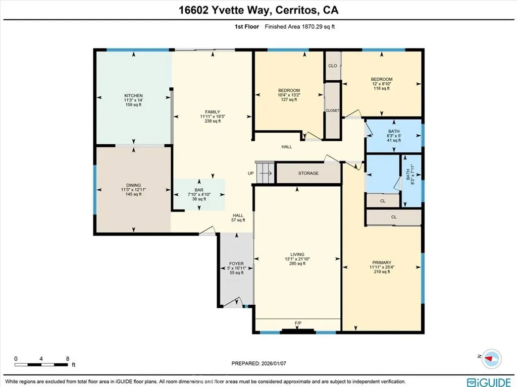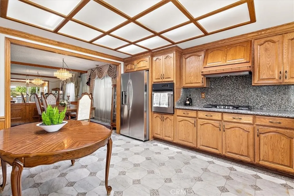 Ideally tucked away on a quiet cul-de-sac, this inviting home enjoys a prime location walk to highly desirable Wittmann Elementary, Frontier Park, Whitney High-ranked #1 in CA by US News(Entrance exam required), and Cerritos Park East offering full range of sports and recreation activities. Featuring a rare, highly sought-after floor plan with an exceptional convenience of 3 bedrooms 2 bathrooms on main level, plus another bedroom upstairs alongside an enormous bonus room and an open loft. Upon entry, you are welcomed by impressive volume ceilings that immediately create a sense of space and light, beautifully enhanced by a large skylight overhead. Decorative and elegant granite tile flooring flows seamlessly from the entry through the family room, kitchen, and formal dining room, setting a refined and cohesive tone throughout the main living areas. The living room feels warm and intimate, highlighted by plush carpeting and a classic tile fireplace façade, mantle and hearth—A perfect space for connecting and relaxations. The bright and welcoming kitchen is thoughtfully upgraded with granite countertops, a full-wall granite backsplash, and abundant solid oak cabinetry. It integrates effortlessly with the formal dining room, the family room, and a large sliding door leading to the backyard, making everyday living and entertaining feel natural and connected. An open bar further extends the entertaining space, linking the living room to the family room with ease. Custom, intricately crafted wood details grace the entire first level, from striking front doors to staircase balusters, crown moldings, doorways, and overhead trims, reflecting timeless elegance and true pride of ownership. The primary bedroom is desirably located downstairs, offering comfort and convenience. Upstairs, the expansive bonus room features soaring ceilings and opens to an airy loft with a large built-in bookcase. All bathrooms are spotless-2 downstairs bathrooms completely remodeled. Additional upgrades include a durable tile roof, upgraded electrical, tankless water heater, dual-zone HVAC, dual-pane windows & sliding doors, and direct access to a 2-car garage. The backyard serves as a peaceful retreat for both relaxation and entertaining, complete with a built-in open patio cover, large planters, and bountiful fruit trees. Cerritos Town Center, Performing Arts Center, freeway 91 and all other conveniences are minutes away. With so much to offer, make this Home Sweet Home yours today!
