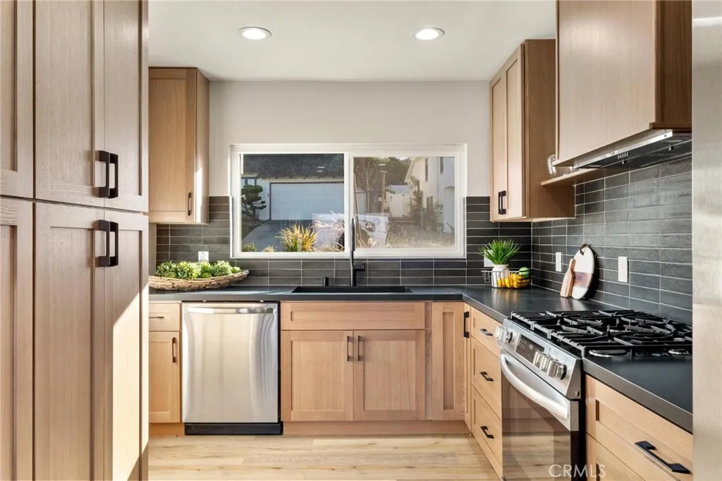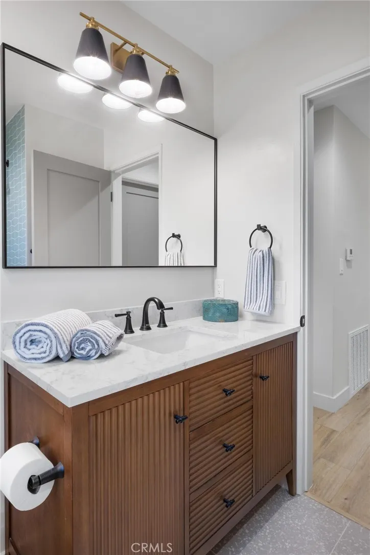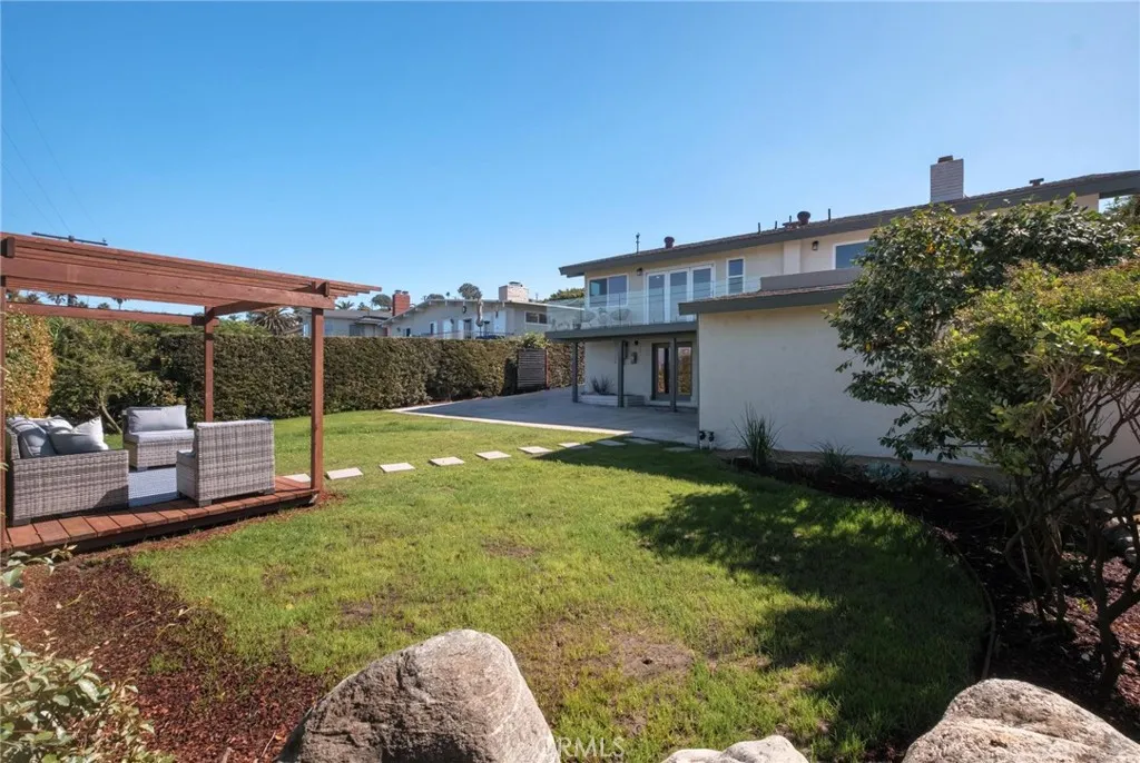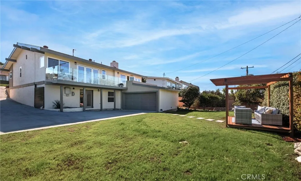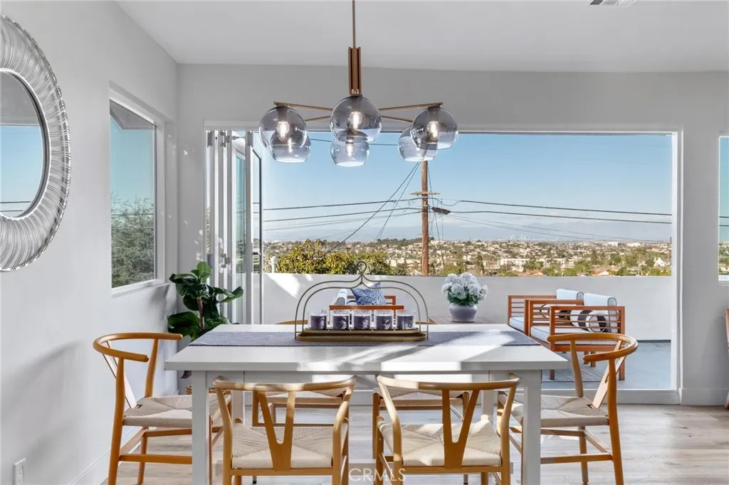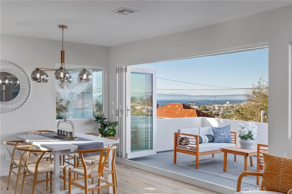 Expansive ocean views, modern design, and a coveted coastal address—this fully renovated 4-bedroom (+bonus room), 3.5-bathroom home in the heart of the Hollywood Riviera brings elevated South Bay living to life with thoughtful style and flexible space throughout. Upstairs, panoramic accordion glass doors invite the outdoors in, connecting the living room, dining area, and bold designer kitchen to a spacious entertaining deck with unobstructed views from the Pacific Ocean to downtown Los Angeles. The kitchen makes a striking impression with natural wood cabinetry, black quartz countertops, stainless steel appliances, and open shelving that blends warmth with modern edge. All three upstairs bedrooms are generously sized, including the primary suite with direct access to the back deck and view. The ensuite bathroom is finished with clean, contemporary touches, and every bathroom in the home has been fully remodeled with a cohesive and timeless aesthetic. Downstairs offers a flexible layout ready to meet your needs—whether you envision a second primary suite, media room, guest retreat, or quiet lounge, the expansive bonus room delivers. A large bathroom with soaking tub, dual vanities, and walk-in shower adds spa-like comfort, while an additional bonus space nearby is perfect for a home office, playroom, or workout area. The oversized laundry room adds even more versatility, with plenty of space for folding, storage, or creative use. Outside, new drought-tolerant landscaping enhances the home’s curb appeal, and a peaceful backyard with a brand-new pergola provides the perfect setting for evening dinners or weekend entertaining. Set in a prime pocket of the Hollywood Riviera—just moments from the beach, Riviera Village, oceanfront trails, and award-winning schools—this move-in ready home delivers the very best of California coastal living.