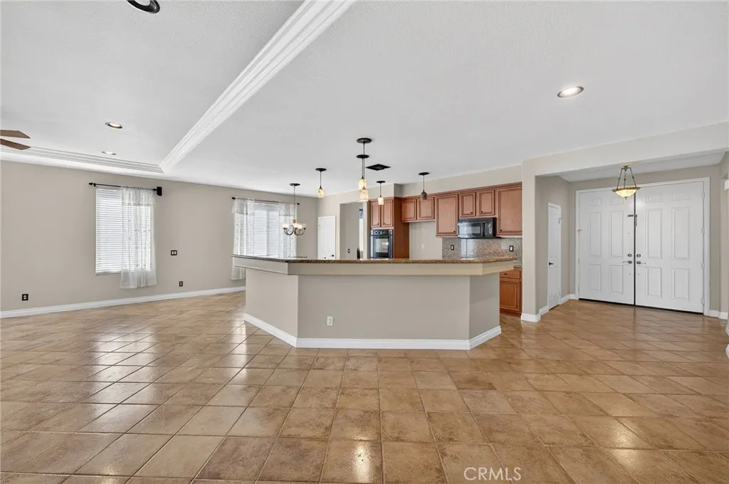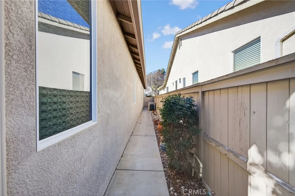 Welcome to The Oasis!! The Inland Empire’s premier 24-hour GUARD GATED active 55+ community. You will be wowed by this "Milano" model's gorgeous curb appeal, starting with a private gated courtyard and a security screen door designed to capture gentle afternoon breezes. Once you walk through the double doors, you'll know you found THE ONE!! The entry leads you to a massive GREAT ROOM featuring a well-appointed kitchen with high-end appliances and a large wrap-around bar that seats 6–8—sure to be the center of all your gatherings. This beautifully updated 3-bedroom, 2-bath home offers ~2,121 sq. ft. of bright, open-concept living with modern updates throughout and the convenience of an included washer and dryer. A new AC unit was installed in 2025, so worry-free living. For the hobbyist or golfer, the oversized garage is a dream, featuring a standard 2-car bay PLUS a separate, private entrance for your golf cart. Step outside to your private backyard oasis featuring a covered patio, mature fruit trees, and peaceful mountain views. Enjoy the ultimate low-maintenance lifestyle with LOW TAXES and NO MELLO-ROOS. Your HOA dues include front yard landscaping, front irrigation water, and trash service! The Oasis offers world-class resort amenities: a 22,500 sq. ft. clubhouse, fitness center, library, sparkling pool/spa, and night-lit tennis and dedicated pickleball courts. Located near top-tier shopping, new hospitals, and the 36-hole Menifee Lakes Country Club, this home offers the comfortable, active lifestyle you’ve been looking for. Check out the video and move in just in time for spring!