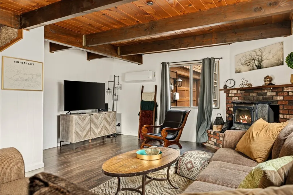 Welcome to your Big Bear City retreat, a cozy 3-bedroom chalet that blends cabin charm with practical living space. Upstairs features three bedrooms, a full bath, and a large game room for movie nights, entertaining, or flexible use. Downstairs offers a warm living area with fireplace, a convenient half bath, a kitchen with appliances included, a laundry room, and direct access to the attached 1-car garage. Recent updates include a new downstairs wall heater, a new gas water heater, and a newly fenced yard, ideal for pets and privacy. End the day by the gas fire pit under the stars and enjoy the peaceful mountain setting. Conveniently located near Big Bear Snow Play, Bear Mountain ski resort, dining, and shopping. The home may be available furnished or unfurnished. Motivated sellers, don’t miss this great opportunity!