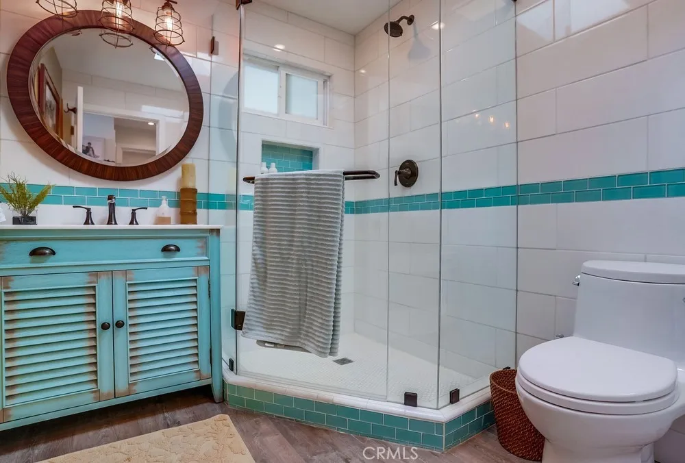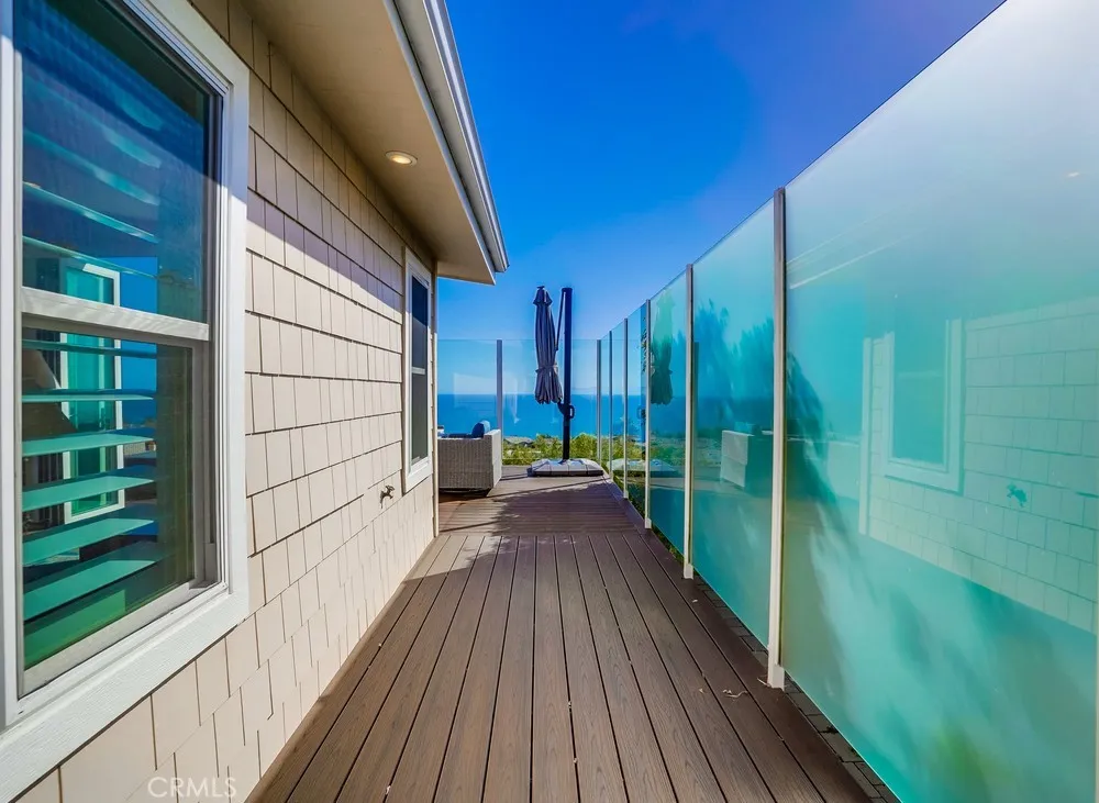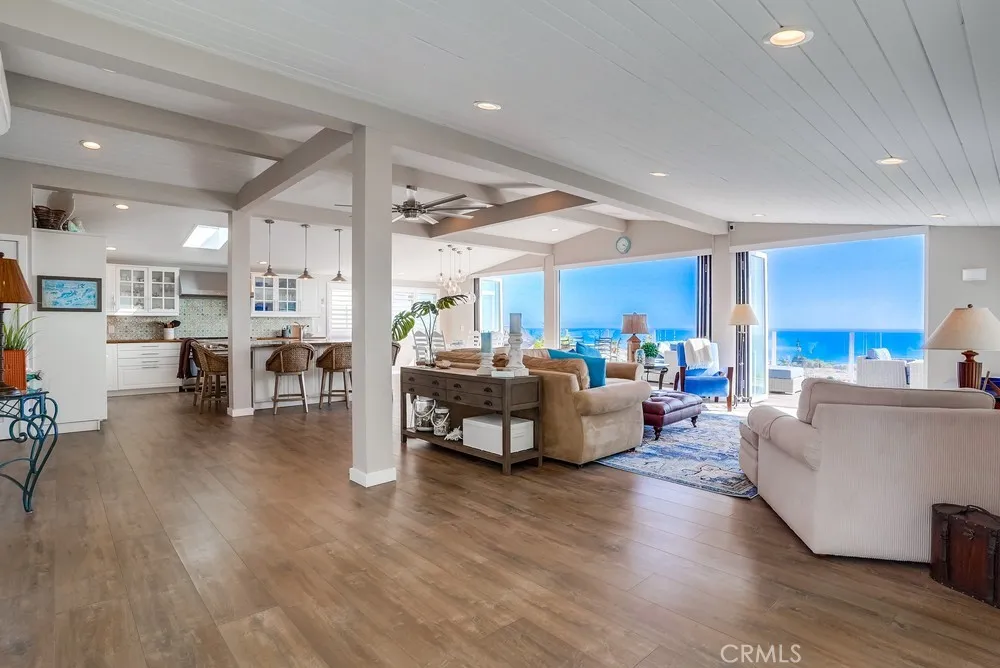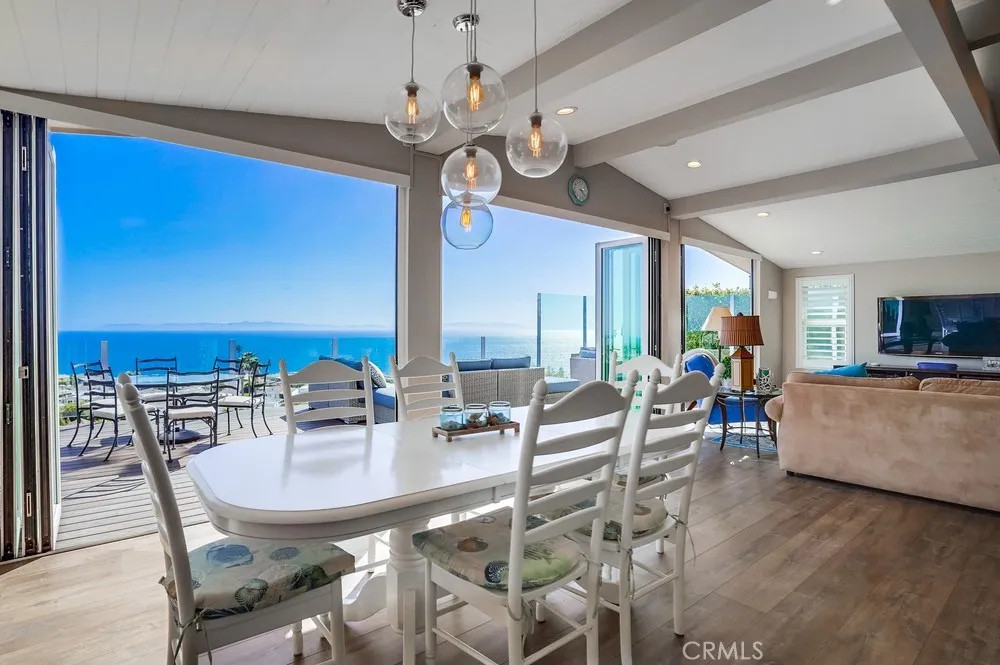 Fantastic opportunity to own in the highly desirable Palos Verdes Shores! Enjoy panoramic ocean & Catalina Island views from this amazing, completely remodeled home! Custom, turnkey 3-bedroom, 2-bathroom home is located on a quiet cul de sac! 1950+ sq. ft. of living space gives you the perfect forever home. Private, wraparound Trex deck with glass railings boasts stunning ocean views, magical sunsets & electronic awning for shade. Enjoy great views from open concept kitchen featuring Granite countertop island & breakfast bar, stainless steel appliances, 6-burner gas cooktop, Thermador oven, hooded vent, dual sink basin, built-in microwave, wine fridge, Thermador sub-zero refrigerator, recessed lighting, pantry, soft-closing cabinetry & sliding pots & pans drawers. Light & bright open concept living room offers high-beam ceilings, folding panoramic doors, deck access, & stunning ocean & sunset views. Dining area features exquisite chandeliers, outdoor deck access, beamed ceilings & jaw-dropping ocean views! Primary bedroom boasts beamed ceilings, skylight, ash wood ceiling fan, walk-in closet with custom cabinetry/drawers, skylights & recessed lighting. Bathroom ensuite equipped w/tranquil polished stone floor walk-in shower & large soaking tub. Guest bedroom features mirrored sliding door closet, recessed lighting & ceiling fan. Third bedroom can also be used as a gym or office. Huge storage room & workshop spans width of home. Individual laundry room features storage drawers & cabinetry plus pet door. Lots of natural light, dual pane windows, wide plank easy care waterproof flooring, vaulted ceilings, recessed lighs, window shutters, sliding barn door, extra wide hallway, high efficiency ductless mini-split heating & cooling system & storage found throughout this spectacular, 1-of-a-kind home. Exterior of home has privacy frosted glass fencing, pathways & driveway paved w/stone pavers, Travertine tile front steps, ledger stone skirting & low maintenance/long lasting Hardi-cement siding. Carport fits 2 cars & golf cart. Palos Verdes Shores is a gated community w/security, coastal hiking access, community activities, private Golf Club, salon, new heated pool & hot tub, carwash, sauna, tennis & pickleball courts, dog parks, gardens, newly remodeled rec. center w/gym, movie theater, billiards, office center, lounges, banquet hall, property manager & maintenance. Community near grocery stores, banks, medical centers, restaurants, resorts & freeways.