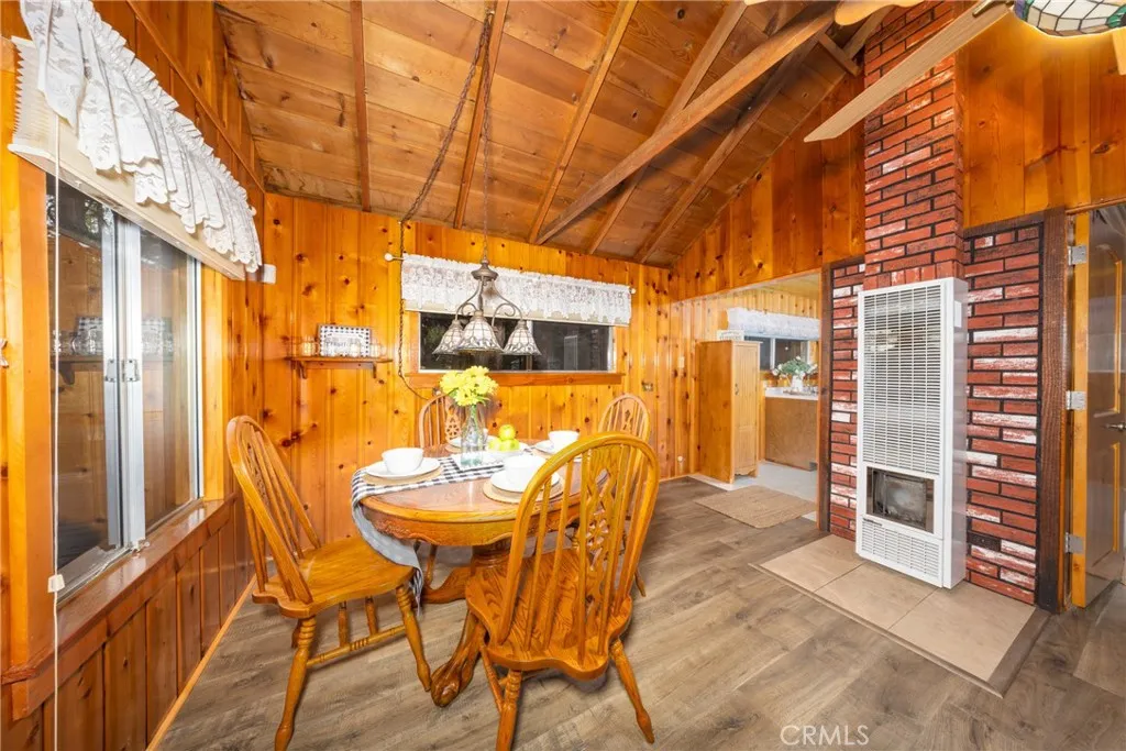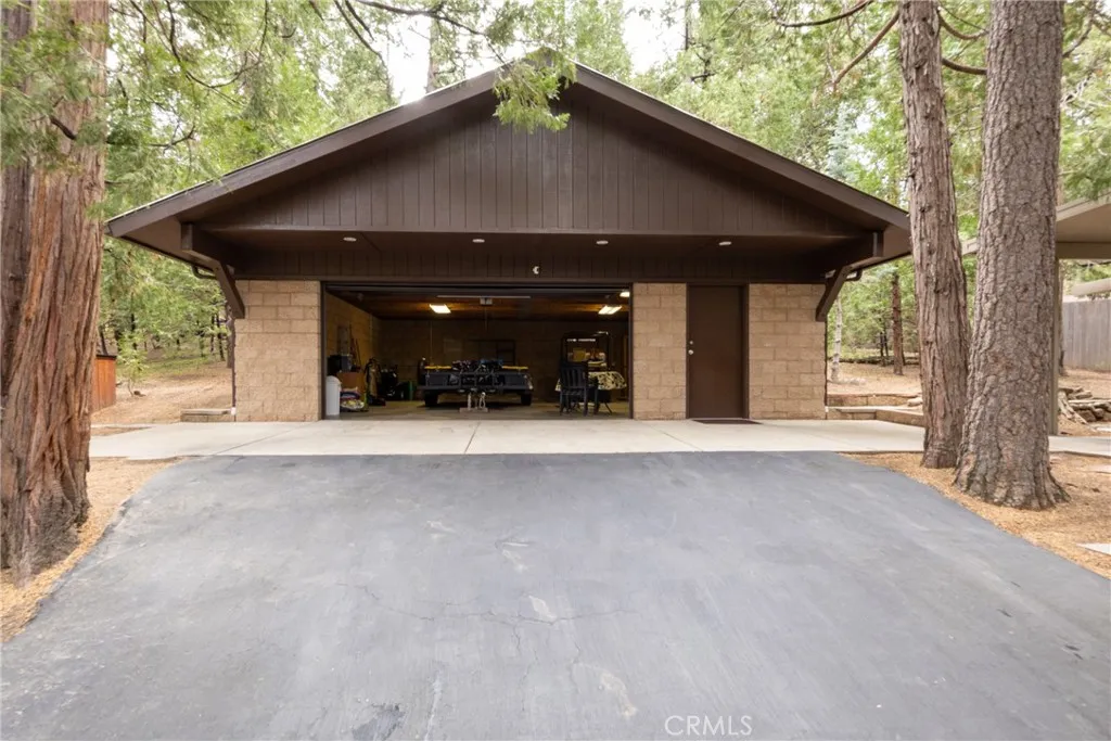 This charming cabin has a generous lot located amongst beautiful trees. It's the perfect retreat for those seeking peace and small -town charm. The cabin has been loved for over a hundred years by the same family. Relax on the spacious covered front porch overlooking the nature and beauty of this beautiful property. Walk into the charming open living dining area with new laminate flooring. The galley kitchen includes a stackable washer and dryer. The bedroom has new carpet and a spacious walk in closet. This property features an oversized 900 square foot garage with exciting potential for an expanded living space, workshop or creative space. The yard is fully fenced with two access gates and the rear yard has a serine park like setting. Entertain family and friends on the backyard covered patio. There's ample parking on the paved driveway. Just moments from a quaint village filled with charming eateries, shops, and local favorites, this cabin offers the ideal blend of small town living. A rare opportunity to own your own slice of tranquil mountain life.