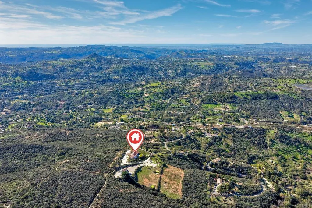 Custom single story Mediterranean retreat perched atop your entire neighborhood with forever views! This home exemplifies PRIVACY and is void of light pollution for gorgeous starry nights. Do you prefer to awe in the beauty of Catalina Island pushing out from the Pacific, snowcapped mountains, or Palomar Mtn, as they're all options. Highly remodeled chef's kitchen with Viking/SubZero opens up to the great room with westerly view. Massive primary bedroom suite with heated floors in the bathroom/closet, and both secondary bedrooms have en-suite bathrooms. In addition to the powder room, there's a 4th full bathroom with a sauna and access to the outside for when entertaining. Impressive bar just like your favorite pub, and pool table conveys. Below the home, you'll find a 3 stall "barn" that can house a 45' RV in the center, and storage in attic is approx 1000 sqft. and features a "dumb waiter" lift/elevator. There is yet another full bathroom in the barn. Aside the barn, there is a hydraulic car lift. Further below the property, you'll love the 3 golf holes.... bunkers & all....with 3 areas to tee off from, a putting green, as well as horseshoe pits & a bocce ball court. 50+ solar panels are owned/PIF, and for optimal efficiency there are independent thermostats in each room. Lot is 4.04 acres, but below there's another parcel of 1.28 acres is INCLUDED with the sale! Space to grow a small vineyard or organic mini farm, or whatever your heart desires.