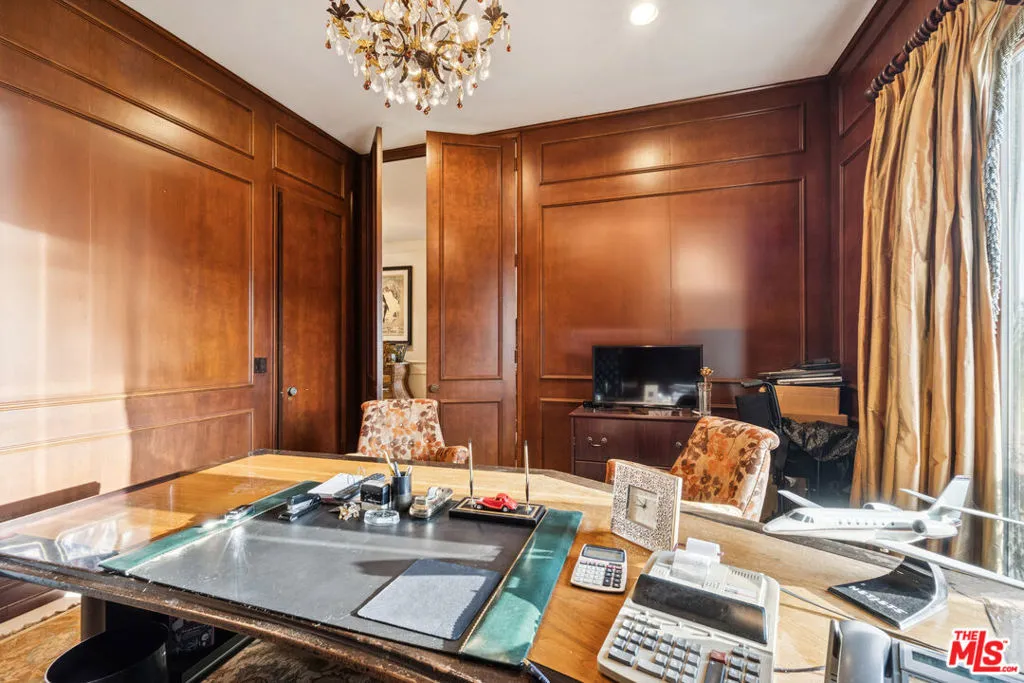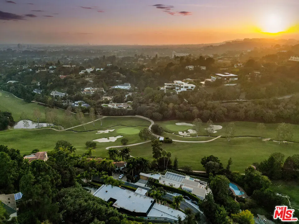 Privately Gated on an elevated 3/4-acre parcel above Bel-Air Country Club, this single-level Regency-inspired single level Villa offers rare seclusion and uninterrupted panoramas of the golf course, canyons and twinkling city lights from nearly every front-facing room. Approx 500 feet of Chalon Road frontage - which is impressive and rare. A handsome French Hip roof adorns the roofline. The curving motor court drive introduces the residence, long known as a discreet venue for Hollywood and political gatherings thanks to its graceful scale and sophisticated allure. Beyond a formal entry, a glass-walled central atrium garden with a fountain forms a magical focal point. Generously scaled living and family rooms share a double-sided fireplace and open through multiple sets of French doors to an enchanting, slate-tiled garden framed by mature landscape and open views. A warm, wood-paneled-like library/office and a truly formal dining room fit for large gatherings both capture traditional architectural prowess. The chef's kitchen features a breakfast area, center island, Viking range with double ovens and direct access to the side garden, with a full laundry and service entry adjacent.Four bedrooms are thoughtfully arranged, including a separate wing devoted to a grand primary suite with fireplace, sitting area, French doors to view terrace, and two full baths on opposite sides one glamorously styled with Hollywood-era sensibility, a dedicated secondary laundry and custom dressing room; and the other with marble finishes, separate tub/shower and its own walk-in closet. Two additional bedroom suites enjoy front-facing canyon skylines; a fourth bedroom (ideal for staff or nursery) has an ensuite 3/4 bath.Refined finishes include honed limestone and herringbone hardwood floors, dual-zone HVAC, skylights, a 2024 roof, and layered mature landscaping that maintains total visual privacy. A proper single-story floor plan and enduring Bel Air pedigree give this estate a timeless and quietly powerful sophistication, ready for the next owner's vision.
