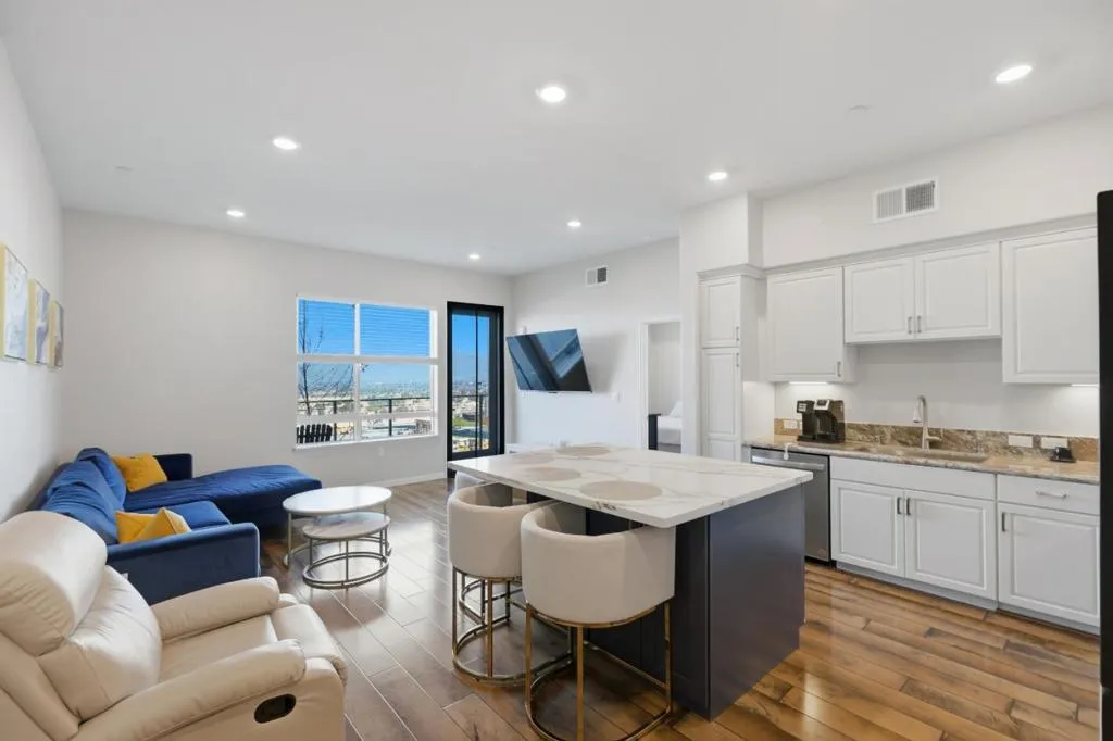Nestled atop Communication Hills this vibrant community-centered neighborhood offers direct access to breathtaking 1.5-mile walking trails, delightful parks, and playgrounds. This exquisite home with stunning panoramic views, boasts an elevator, secure garage, and an inviting rooftop deck. Your brand-new abode features soaring 10-foot ceilings and a generously open floor plan. The open-concept design, awash in natural light, showcases a designer kitchen complete with an island, granite counters, abundant cabinetry, modern, energy-efficient appliances. The living room area extends gracefully to your private balcony or deck. The master bedroom is a sanctuary with a spacious walk-in closet and adjoining bath. Each generously sized bedroom comes with a walk-in closet for ample storage, while the elegantly updated bathrooms infuse modern style throughout the home. For added convenience, enjoy the in-unit washer and dryer, as well as Tandem 2 car garage with Tesla Charger and additional storage racks. Sky View Terrace is a beautifully designed shared space featuring seating areas, a BBQ, and breathtaking panoramic views of the foothills making this an ideal setting for a touch of leisure and relaxation.