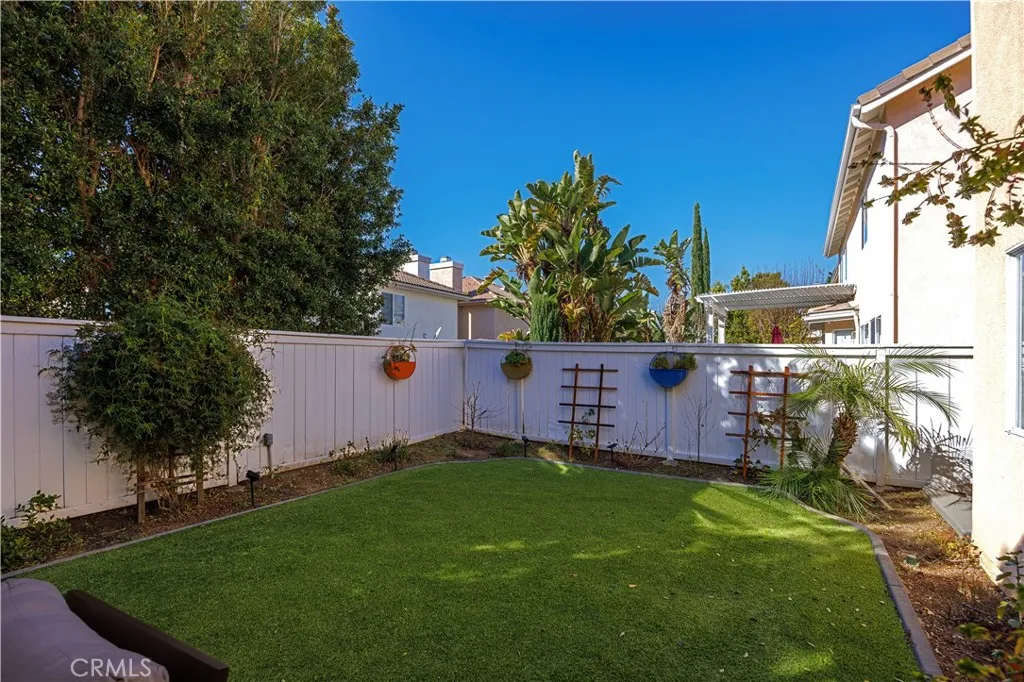 The spacious family room showcases a cozy fireplace and opens seamlessly to a private backyard designed for relaxation and entertaining, complete with a pergola-covered patio, low-maintenance turf, and mature landscaping.
