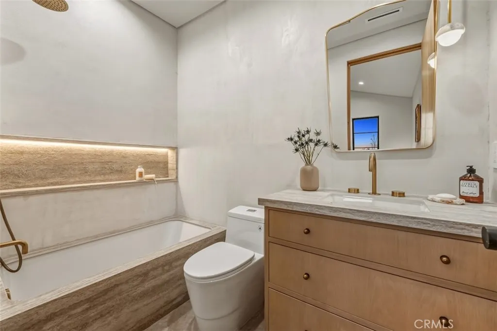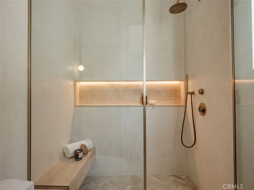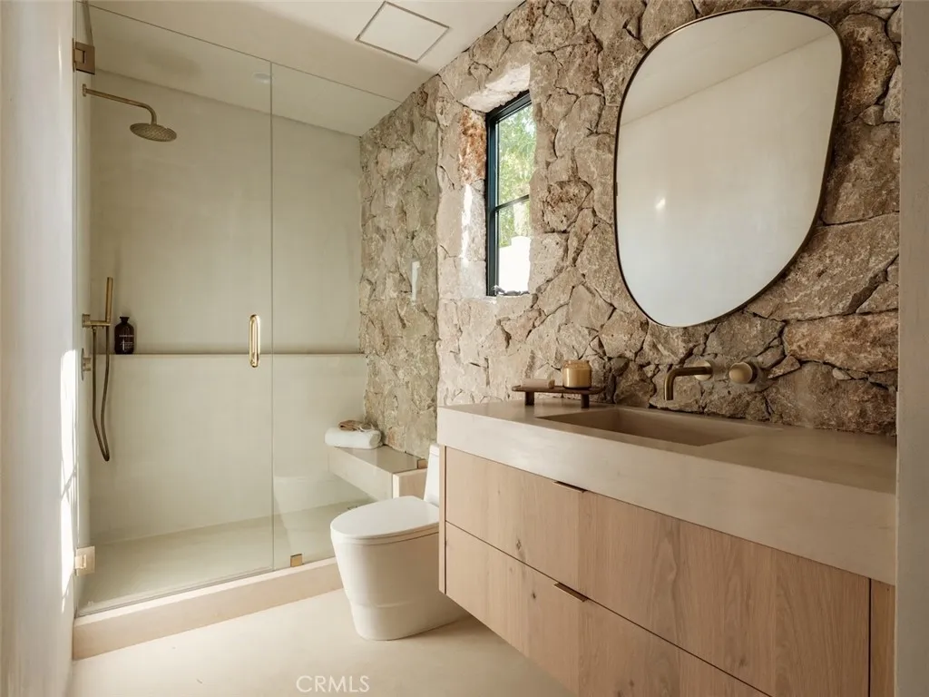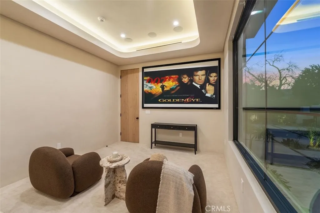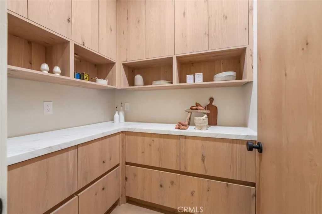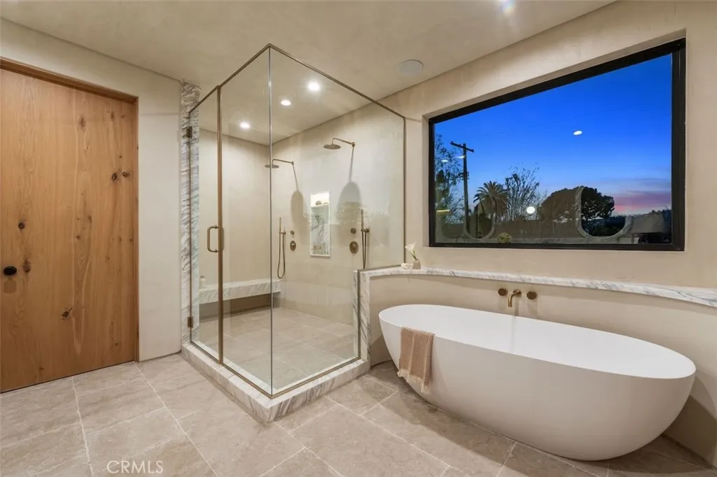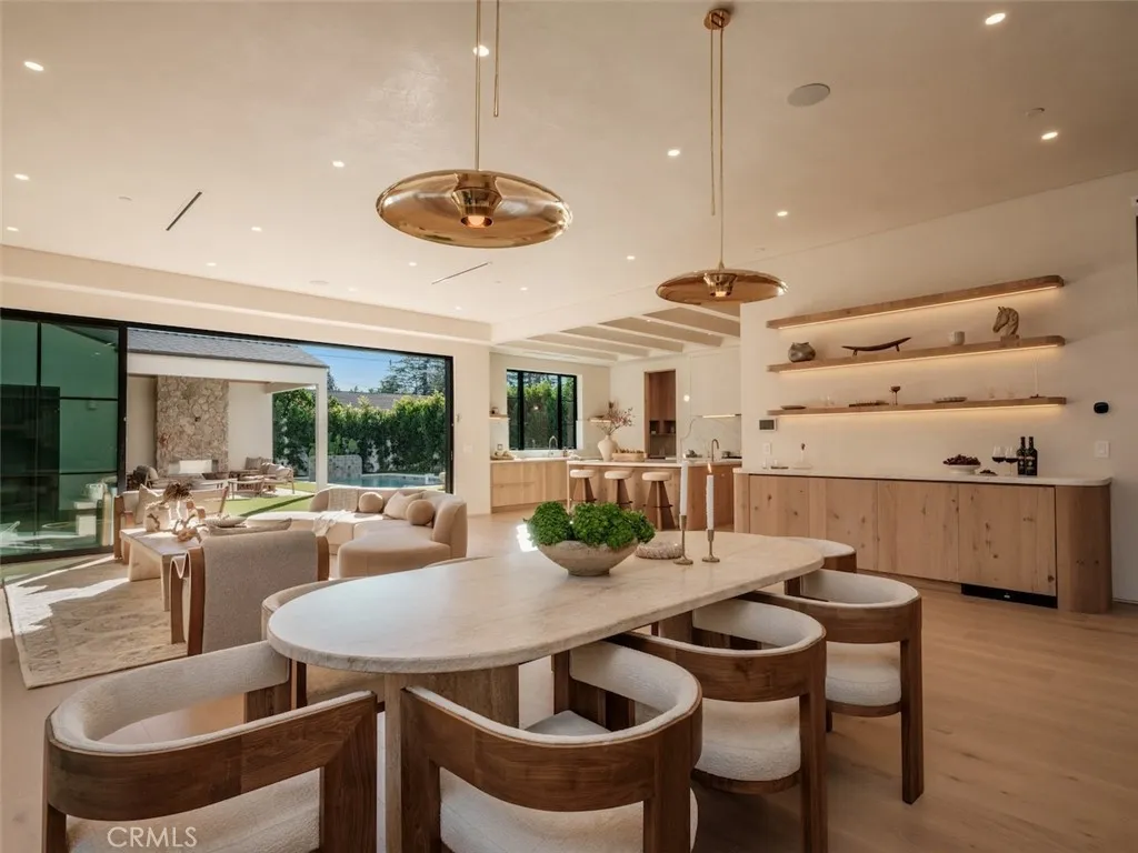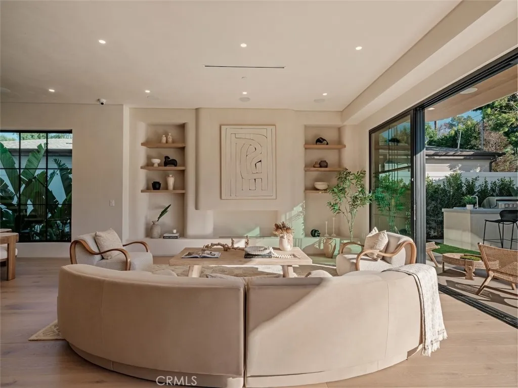 Introducing this breathtaking, one-of-a-kind home that blends sculptural architecture with warm organic materials for a serene, modern living experience. This custom-built home is situated within the highly esteemed Colfax Charter School District. Boasting 5BD/5.5BA, the property also includes a spacious casita offering open living space with an additional bedroom and bathroom. Upon entering the home, you’re welcomed by hand plastered walls, curved aesthetics, and continuous wide-plank oak flooring that guides you through sun-filled spaces. The chef’s kitchen is an organic showcase, centered around a gently rounded island, sculpted curved ceiling, rustic oak cabinetry, marble countertops, high-end appliances, and a walk-in pantry. The expansive family room features a sculpted fireplace wrapped in hand-finished brushed plaster and rustic curved shelving that enhances the warmth and texture of the space. Large sliding doors create a seamless transition between indoors and outdoors, revealing a resort-like sanctuary with a shimmering pool, spa, covered patio with a seating area and fireplace, and an outdoor cooking area, surrounded by lush greenery for ultimate privacy. The lower level features a cozy movie theater, an ensuite guest bedroom, and a powder room. Upstairs, the primary suite becomes a retreat of its own, boasting a softly rounded fireplace, a generous walk-in closet, and a large balcony with views of the tranquil, tropically landscaped yard. The spa-inspired primary bathroom offers a soaking tub, walk-in shower, and dual vanities finished in micro-cement and natural stone. Three additional ensuite bedrooms and a large laundry room complete the upper level. Enhanced with premium features including Control4 smart technology, whole-home surround sound, a security system with cameras, and energy-efficient solar panels, this home is both luxurious and thoughtfully connected. Located in the highly coveted community of Valley Village.