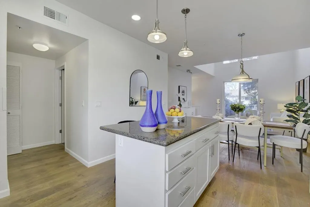 Stylish and well-maintained townhouse in the desirable Irvington area! Built in 2008, this vibrant home is tucked away in a quiet and convenient location within the Park Lane community. The open-concept layout features high ceilings, wood flooring, and stainless steel appliances. The main level offers a sun-filled living area that flows into a spacious kitchen with maple cabinetry, granite countertops, a custom tile backsplash, and a modern center island perfect for both everyday living and entertaining. A downstairs bedroom suite with a private patio is ideal for a home office or overnight guests. Upstairs, the primary suite features dual sinks, a stall shower, and a soaking tub. Additional highlights include a 2-car side-by-side garage with ample storage space. Community amenities include a heated pool, greenbelt, and a children's play area. Conveniently located within walking distance to top-rated Irvington schools and just minutes from 680/880, BART, Tesla, and a wide range of shops and restaurants. Welcome home!