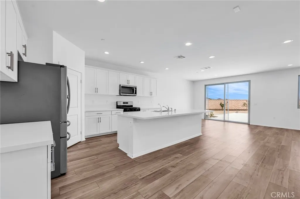 Welcome to the Visionary—the largest plan in Pathway's Cimarron Ridge community. This stylish 5-bed, 3-bath(2824 sqft) home with a spacious loft and a flexible room that works as an office, playroom, or potential 6th bedroom. A full bedroom and bath downstairs are perfect for guests or multigenerational living. Energy- smart paid-off solar and a home water softener included. The open-concept kitchen features an oversized island, white cabinets, quartz countertops, and stainless steel appliances (included), flowing into the great room. Picture windows frame rolling mountain views from the loft, the primary bed and bath. No rear neighbor for added privacy. Set on one of the neighborhoods largest lots(13,673 sqft), the backyard is entertainer-ready with room to add a pool. Additionally the backyard has drip-irrigated mini-orchard: oranges, lemons, pomegranates, pears, nectarines, peaches, plums (red & loquat/Chinese), figs (brown & green), guava, apple, avocado, grapes, persimmon, almond, walnut—plus strawberries, blueberries, cranberries, mulberries (white/red/black)—and premium rose bushes for year-round color. Plus a coup Community will soon have a new 10-acre sports park, Little League/softball field, three soccer fields, picnic pavilion, pocket parks, turf & play areas, shade trees, and a multi-purpose trail/walking path network. Minutes to Canyon Lake, Countryside Marketplace, and Town Center Marketplace. Close to 15/215 fwy.