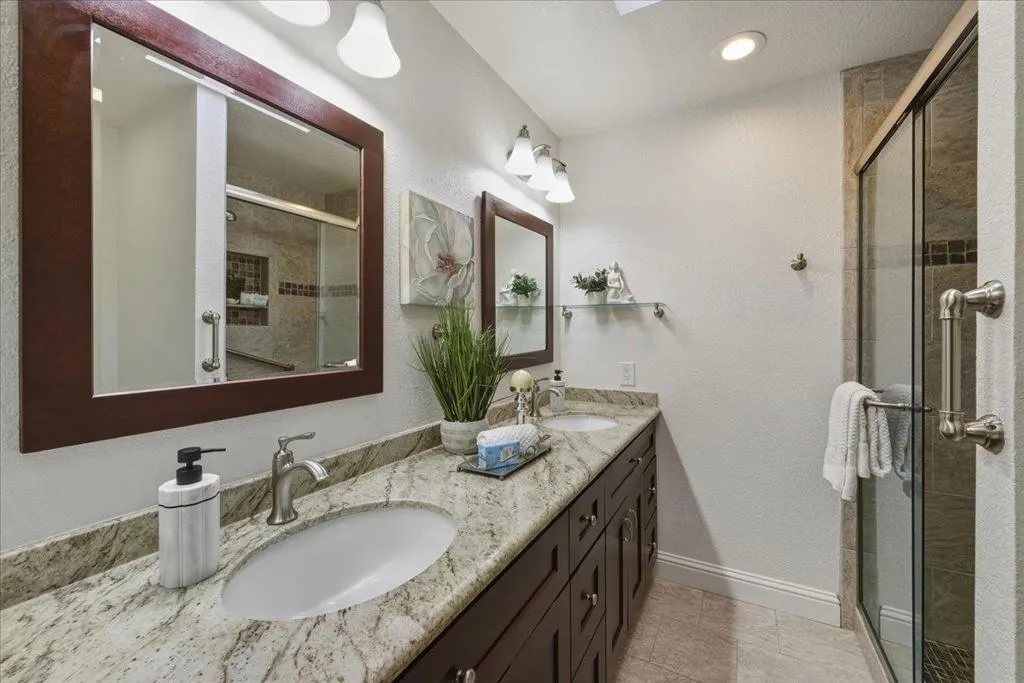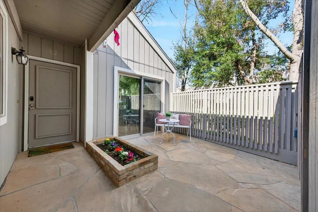 *Single family like privacy maximized home with shared wall limits to the only central/middle room adjacent to one neighbor! *Welcome to this charming end-unit, single-story townhouse nestled along a serene creek and lush greenery in the desirable Stoneridge neighborhood. *The beautifully maintained residence features rich espresso custom-built solid hardwood cabinetry coordinated with natural stone tile & granite countertops, and recessed lights. *The home offers custom-remodeled bathrooms, and an updated kitchen with upscale backsplash surrounding, and bay garden window. *The soaring vaulted ceilings and open living area with skylights, high-efficiency dual-pane windows, and sliding doors highlights natural light for both everyday living and entertaining, while the secluded primary bedroom provides a peaceful retreat with upgraded baths. *Enjoy a family, kid & pet-friendly community near Foothill High, Lydiksen Elementary, Muirwood Park, and Moller Park, with easy access to I-680, walkable BART, and close proximity to Stoneridge Shopping Center. *Centrally located within the community near school bus stops & HOA amenities including a pool, clubhouse, tennis courts, RV parking, creekside greenbelts, and guest parking.