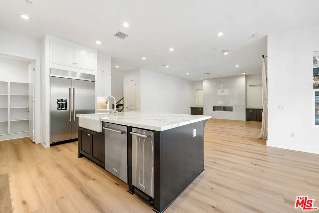 Introducing a rare opportunity in the prestigious guard-gated community of Hillcrest, a stunning 2022 build that blends luxury, comfort, and designer-level upgrades in every corner. Located on a quiet cul-de-sac with exceptional privacy, this home is in impeccable, move-in ready condition and lives like a modern resort. Step into an open, light-filled interior where the heart of the home is the chef-inspired kitchen, complete with a built-in refrigerator, side-by-side ovens, a 6-burner cooktop with griddle, a 48" proffesional vent hood, a large center island, and a walk-in pantry. The kitchen flows seamlessly into the family room, which highlights a sleek cosmo fireplace, custom wall treatment, and custom built-ins, and then expands outward through large stackable sliding glass doors to the extraordinary backyard. The outdoor living spaces are a true showpiece: a new Pebble Fina pool and spa, a built-in BBQ center with outdoor TV, a pergola with a gas firepit, and a covered outdoor lounge with its own fireplace. This stunning backyard is designed for year-round relaxation and entertaining. Inside, the first floor offers an expanded bedroom suite, ideal for flexible living needs. The first level also includes an extra bonus room - ideal for a home office or gym. Upstairs, the primary suite impresses with a massive walk-in closet featuring custom built-ins, and a spa-style bathroom with dual vanities, a free-standing soaking tub, and a spacious walk-in shower. The upper level also boasts a generous loft space, delivering additional versatility. A finished 2-car garage outfitted with a car charging station, custom cabinets and epoxy flooring adds convenience and style. Located in one of Porter Ranch's most sought-after gated enclaves, this residence offers a rare blend of luxury, privacy, and contemporary design, and is located just moments from Porter Ranch Community School, Porter Ranch Community Park, equestrian and hiking trails, The Vineyards shopping center, and Porter Ranch Town Center. This is the BEST of Hillcrest!