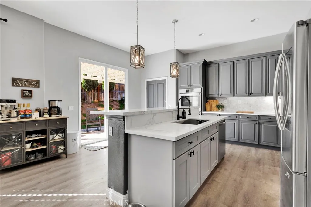 Beautiful 3,317 sq. ft. home featuring 5 bedrooms, 4 bathrooms, and a spacious 3-car garage. The light and bright open floorplan offers generous living areas, neutral finishes, and modern upgrades throughout. The main level includes an inviting dining space with custom built-ins, a comfortable family room, and a well-appointed kitchen with ample storage and seamless access to the backyard. The desirable floorplan features the primary suite downstairs for privacy and convenience, complete with an en-suite bath and walk-in closet. Upstairs you’ll find four additional bedrooms along with a large loft/bonus room complete with a built-in bar area—ideal for entertaining, media, or additional living space. Outdoor living is enhanced by a covered back patio, perfect for year-round enjoyment and gatherings. Additional highlights include the 3-car garage for parking and storage and a solar system for improved energy efficiency and reduced utility costs. Situated in a desirable, commuter-friendly community, this move-in ready home offers the perfect blend of space, function, and modern convenience.