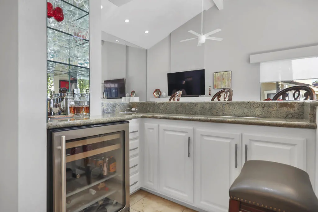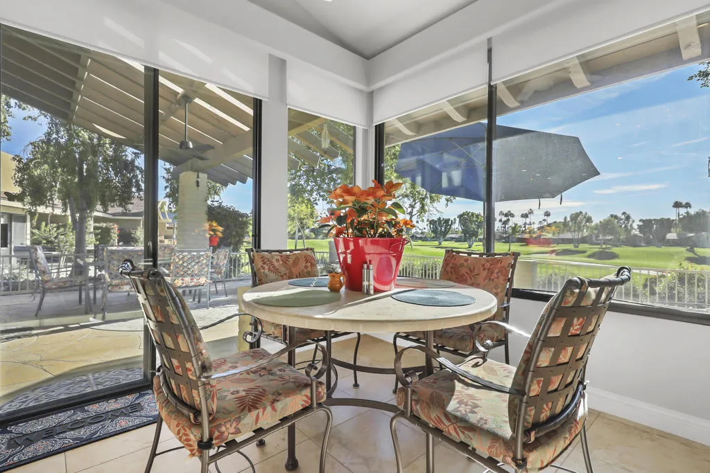 Just Reduced!! Beautiful south facing 2 bedrooms, den 3.5 bath condo in the prestigious Lakes Country Club.Step into luxury living with stunning south facing views of the gorgeous mountains and a big open double fairway.This condo boasts an open, light filled layout with high ceilings, lots of windows to capture all the beautiful mountain and golf course views. With seamless indoor- outdoor living spaces perfect for entertaining.Nestled within one of the deserts sought after communities, residents enjoy access to 27 championship holes of golf, tennis and pickleball courts, and a new state-of-the-art Wellness Center, gorgeous newly renovated clubhouse and event center.Experience one of the best of resort-style living in this exceptional turnkey residence.Upgrades include-Learning tankless water heater Water softening systemDuctless mini-split A/C system in garageTesla ChargerNew utility room with large size refrigerator, freezer, wine refrigerator, and cabinets for extra storage and sink,New gorgeous desert landscaping2024 customized golf cart with wireless sound bar and charger.Full list will be available to pick up at the condo.