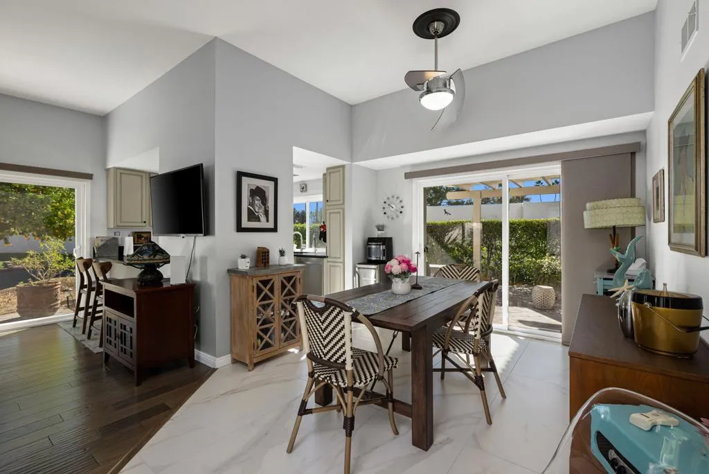 MOVE-IN SPECIAL: 1/2 month free rent with 12 month lease and available furnished. Experience refined desert living in this sophisticated residence within The Fairways, a premier gated enclave in Palm Springs. Spanning 1,168 square feet, this two-bedroom, two-bathroom home seamlessly blends interior comfort with the quintessential outdoor lifestyle of the Coachella Valley. The thoughtfully designed floor plan bathes the interior in natural light. An expansive living and dining area serves as the heart of the home, offering views of the surrounding mountains and manicured greenery. These views extend effortlessly to a private, oversized patio, perfect for al fresco entertaining. Positioned on a desirable corner lot, the property includes a detached one-car garage and an attached carport, providing ample space for a second vehicle or a golf cart. The primary suite offers a spacious retreat with an ensuite bath, while the secondary guest bedroom is positioned for maximum privacy. Convenience is further enhanced by a washer & dryer in the garage. You will enjoy access to 8 heated pools, pickleball courts, tennis courts, and ping pong. Golf is located directly across at Tahquitz Creek Golf Resort, featuring two championship 18-hole courses and a full driving range. Just minutes from the dining and boutiques of Downtown Palm Springs and steps away from the CV Link for hiking, cycling, and low-speed electric vehicle transit.
