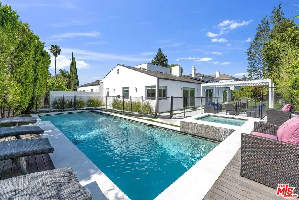 Fantastic, inviting, warm, contemporary 5-bedroom, plus a large multi-purpose room upstairs, 4 bathrooms, and a guest powder room. This spectacular home is situated in a pristine, exclusive cul-de-sac in the highly sought-after neighborhood of Bel Air Park with 24-hour Guard and security patrol. All rooms and bedrooms are on the first floor, except one large room on the second floor with a cozy balcony. This immaculate beauty features a gorgeous living room and a formal dining room. Large backyard with a secluded grassy yard, patio to lounge and dine in, and a large heated pool, spa, and firepit. Property is also for lease.