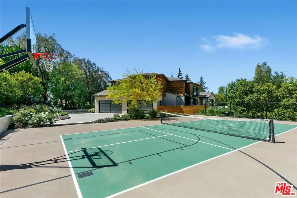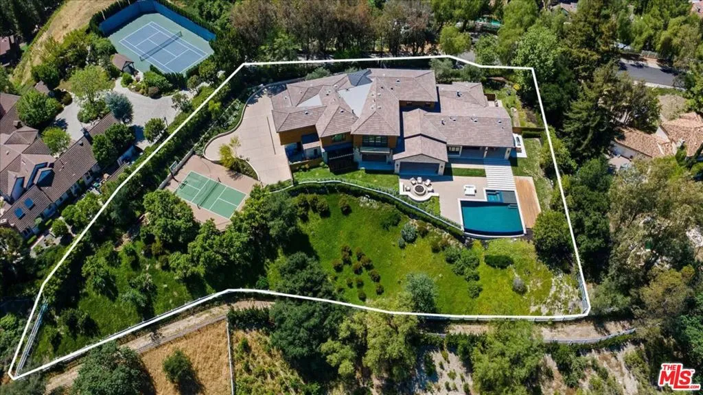 Privately located at the end of a cul-de-sac in the prestigious guard gated community of Hidden Hills sits this impressive 10,401 square foot estate on over an acre of land. Drive through the gates and up a long private driveway to the motor court and 4-car garage. The home provides explosive views from every room in the house of the city below. Enjoy the peace and tranquility of the lush backyard with a covered patio with heaters, outdoor kitchen, firepit, spa, infinity edge pool, meditation deck and sports court. Natural light saturates the home through the various windows and sliding glass doors that seamlessly marry the indoors with the outdoors for that ultimate in California lifestyle. Enjoy movie night in the home theater or entertain in your game room. Display your fine wines from the glass-enclosed temperature-controlled wine closet. The chef's kitchen has a walk-in pantry, dual islands and plenty of cabinetry. All 5 guest bedrooms are en-suite with walk-in closets. The primary is truly a retreat with high ceilings and sliding glass doors that lead to a private balcony that overlooks the city light views. The primary bathroom has a soaking tub, two wash closets, dual vanities, and an oversized shower. The dual primary walk-in closets have been built out with custom shelving and drawers. The other amenities of the home include smart home technology with surround sound, wide-plank hardwood floors and gorgeous chandeliers and impeccable furniture.
