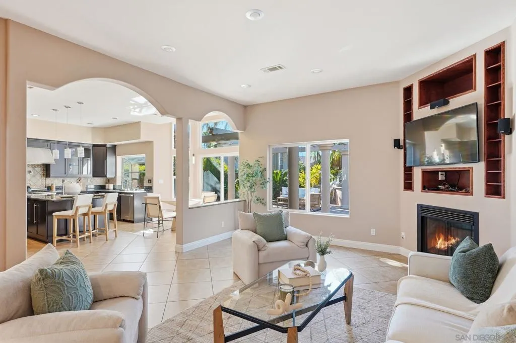 Experience tropical luxury in this stunning 5-bedroom, 4.5-bathroom Westwood home, masterfully rebuilt in 2008. Vaulted ceilings soar over the open-concept kitchen and living areas, creating a bright, airy atmosphere complemented by high-end appliances and a cozy breakfast nook. The versatile floor plan includes a convenient main-level bedroom with a full bath, while the upper level features a grand primary suite and three additional bedrooms. This home is a masterpiece of space and sophisticated design. Nestled in the desirable Westwood community of Rancho Bernardo, this property is a private sanctuary surrounded by mature palms and lush landscaping. The expansive backyard is an entertainer's dream, featuring a pillared pergola, extensive hardscaping, and a tranquil multi-tiered pond. Residents enjoy premier access to the Westwood Club’s amenities and the top-rated Poway Unified School District. With close proximity to the Bernardo Winery, local golf courses, and the San Diego Zoo Safari Park, this home offers the perfect blend of serenity and convenience. Discover your own piece of paradise with ample room for relaxation and grand-scale hosting.