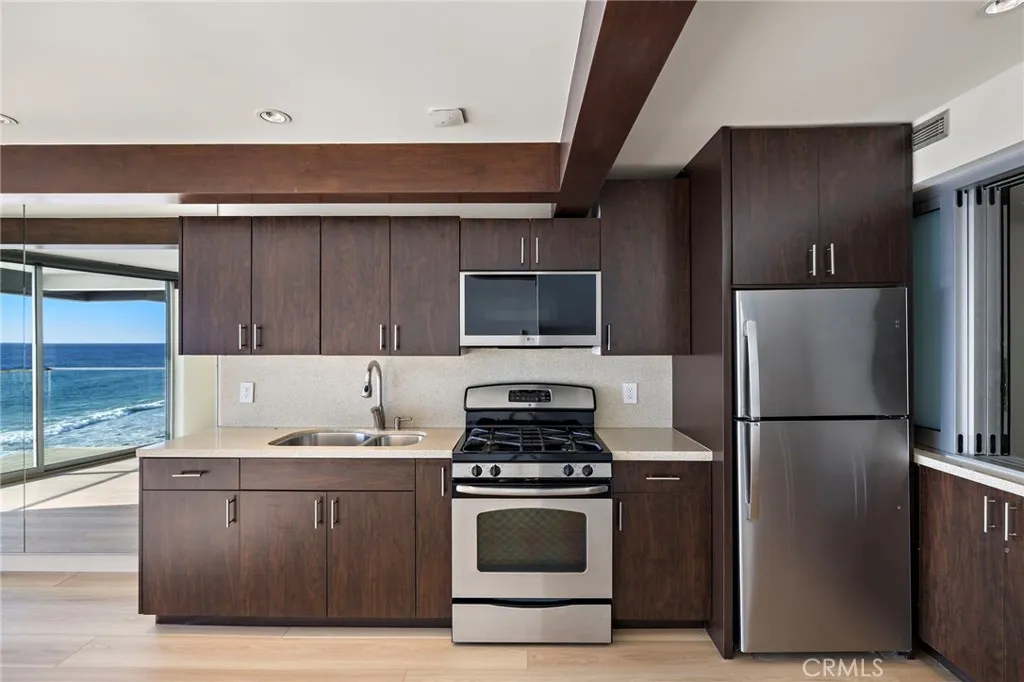 OCEANFRONT! Gorgeous upscale Penthouse unit is located in the heart of Laguna Beach, walking distance to shopping, restaurants, and all of Laguna's attractions. New designer lighting and paint through out including contemporary brushed nickel LED fan lights, granite counters, travertine floors, beautiful bathroom. This incredible unit sits directly on the ocean front with direct beach accessIncludes a private designated parking space #7 also featuring security entry gate and front door settings for maximum privacy and safety.