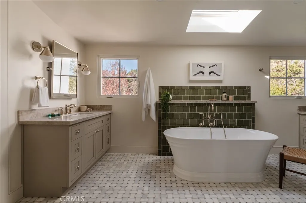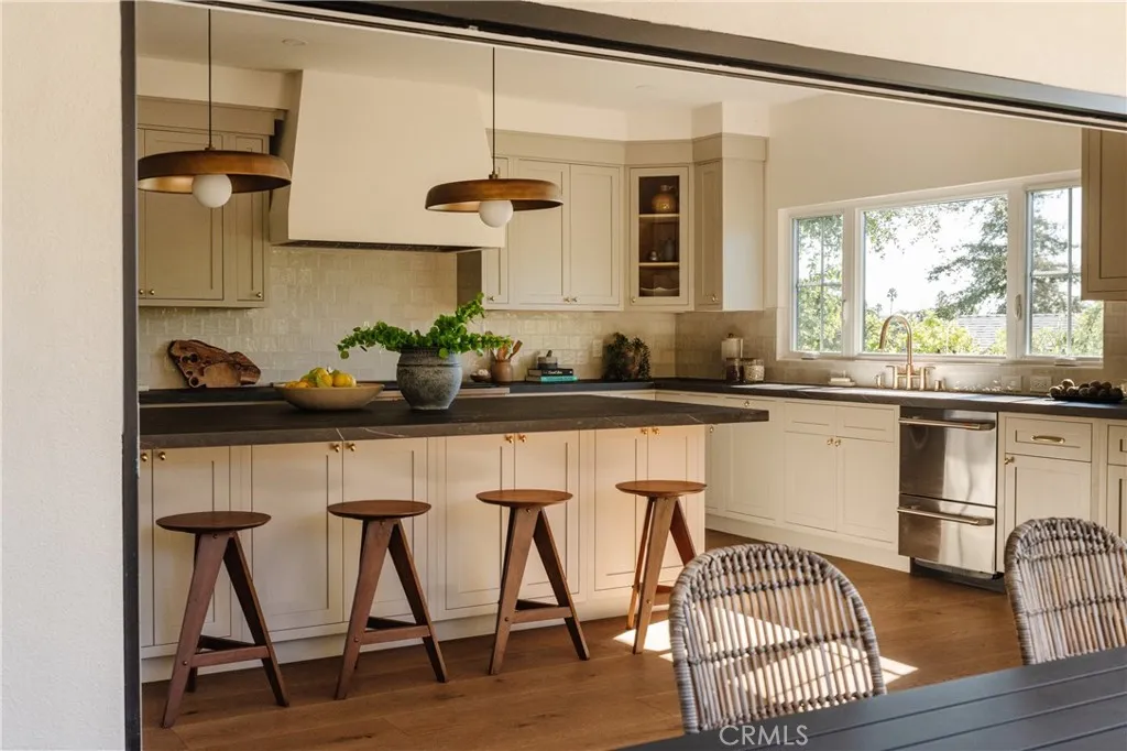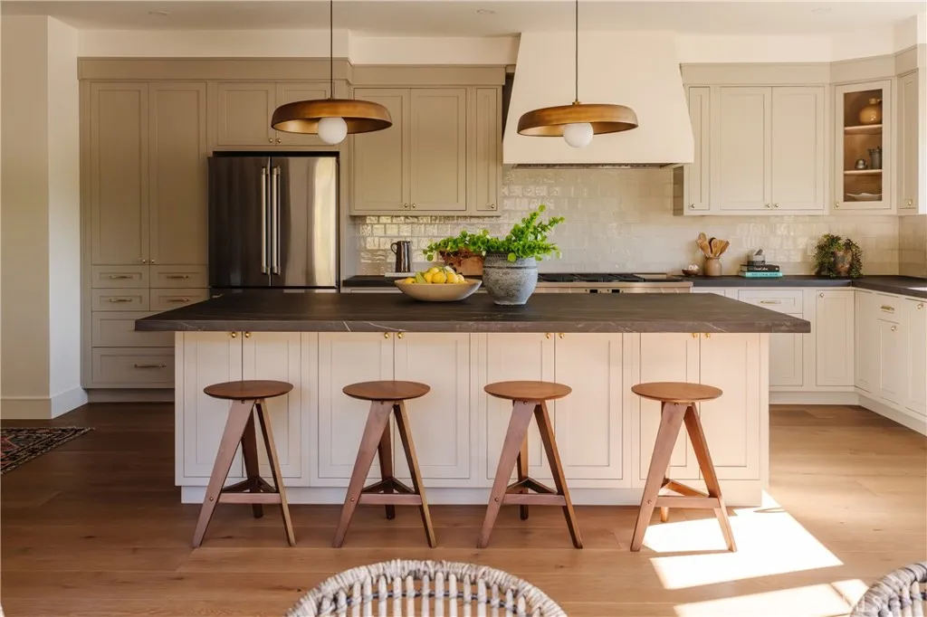 Welcome to 2201 North Hobart Blvd, a fully reimagined residence set just moments from the iconic Griffith Park Observatory—one of Los Angeles’ most historic and cinematic landmarks. Inside, the home has been meticulously rebuilt from the inside out: smooth-finish drywall, new electrical throughout, recessed lighting, wide-plank engineered hardwood floor, and solid-core shaker doors with polished nickel hardware create a refined, cohesive aesthetic at every turn. The heart of the home is a show-stopping chef’s kitchen, anchored by a 9-foot entertainment island topped with honed SapienStone porcelain. Custom inset shaker cabinetry, aged brass hardware, statement lighting, and a top-tier Café appliance suite—including a 48” dual-fuel range, built-in griddle, double ovens, wine cooler, French-door refrigerator, and smart-home connectivity, make this space equally perfect for hosting or everyday living. Spa-inspired bathrooms feature honed marble basketweave floors, custom cabinetry, designer fixtures, and in the primary suite, a dual shower, freestanding tub, and private toilet room. The primary bedroom enjoys a picture-window view of Los Angeles, private deck access, custom display shelving, and an oversized walk-in closet ready for personalization. Living and dining areas are warm and inviting, centered around the original stone fireplace, thoughtfully enhanced with backlighting. A built-in study hallway, abundant storage, and a beautifully finished garage with a custom wood-and-glass door add both function and style. Outside, the home’s curb appeal shines with new paint, hand-carved mahogany double doors, upgraded windows and expansive sliding and bifold doors that seamlessly connect indoor and outdoor living. Landscaped grounds with new sod, irrigation, preserved mature trees, and curated plantings create a tranquil retreat—ideal for entertaining under the stars. A rare opportunity to own a turnkey Los Feliz Estates residence in one of LA’s most storied and beloved neighborhoods—where history, nature, and luxury converge!