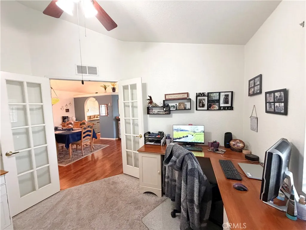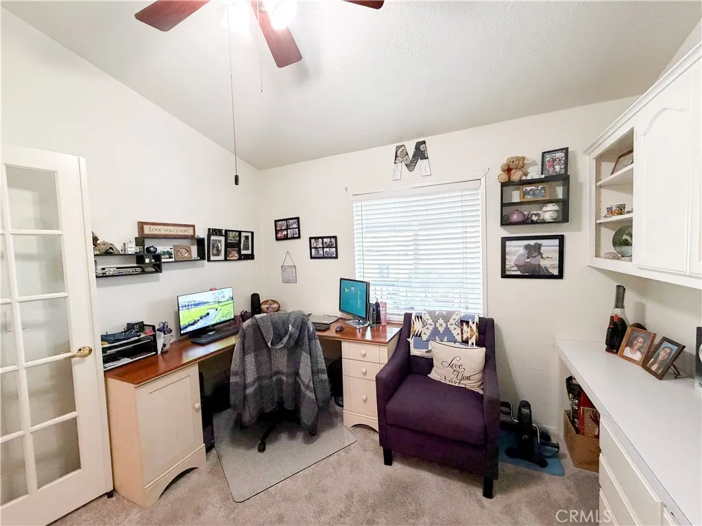 Welcome to Lake Los Serranos, a highly sought-after 55+ community in the heart of Chino Hills—an ideal place to enjoy retirement living. This beautiful, turn-key home is perfectly situated on a corner lot in a quiet cul-de-sac and offers exceptional curb appeal with an inviting front porch. Step inside to a welcoming living room that flows seamlessly into the kitchen and dining area. The nicely sized kitchen comes fully equipped with all appliances, including an oven/range, dishwasher, built-in microwave, and refrigerator. Ample cabinetry, generous drawer space, and a pantry with convenient pull-out shelves provide excellent storage and functionality. Adjacent to the kitchen is a spacious dining area, comfortably accommodating a six-seat dining table—perfect for entertaining or everyday meals. The home features three bedrooms and two bathrooms. One bedroom is currently configured as a home office with a built-in wall unit, while both secondary rooms share a guest bathroom with a walk-in shower. The primary suite is generously sized and includes a walk-in closet and an en-suite bathroom featuring dual vanity sinks, a walk-in jacuzzi tub/shower, and an additional separate walk-in shower. A dedicated laundry room offers full-size washer and dryer hookups and provides direct access to the side and backyard. Additional highlights include flooring throughout with carpet in the den and bedrooms, central air conditioning and heating, double-pane windows, ceiling fans, Corian countertops in the kitchen and bathrooms, a large storage shed, and a new water heater. This home truly checks all the boxes—don’t miss this opportunity. But wait there is more, Lake Los Serranos has activities for you to enjoy: bingo night, bible studies, holiday gatherings and the community is close to the 71 freeway, the Shoppes of Chino Hills, and Restaurants. Start packing and make this wonderful home yours!